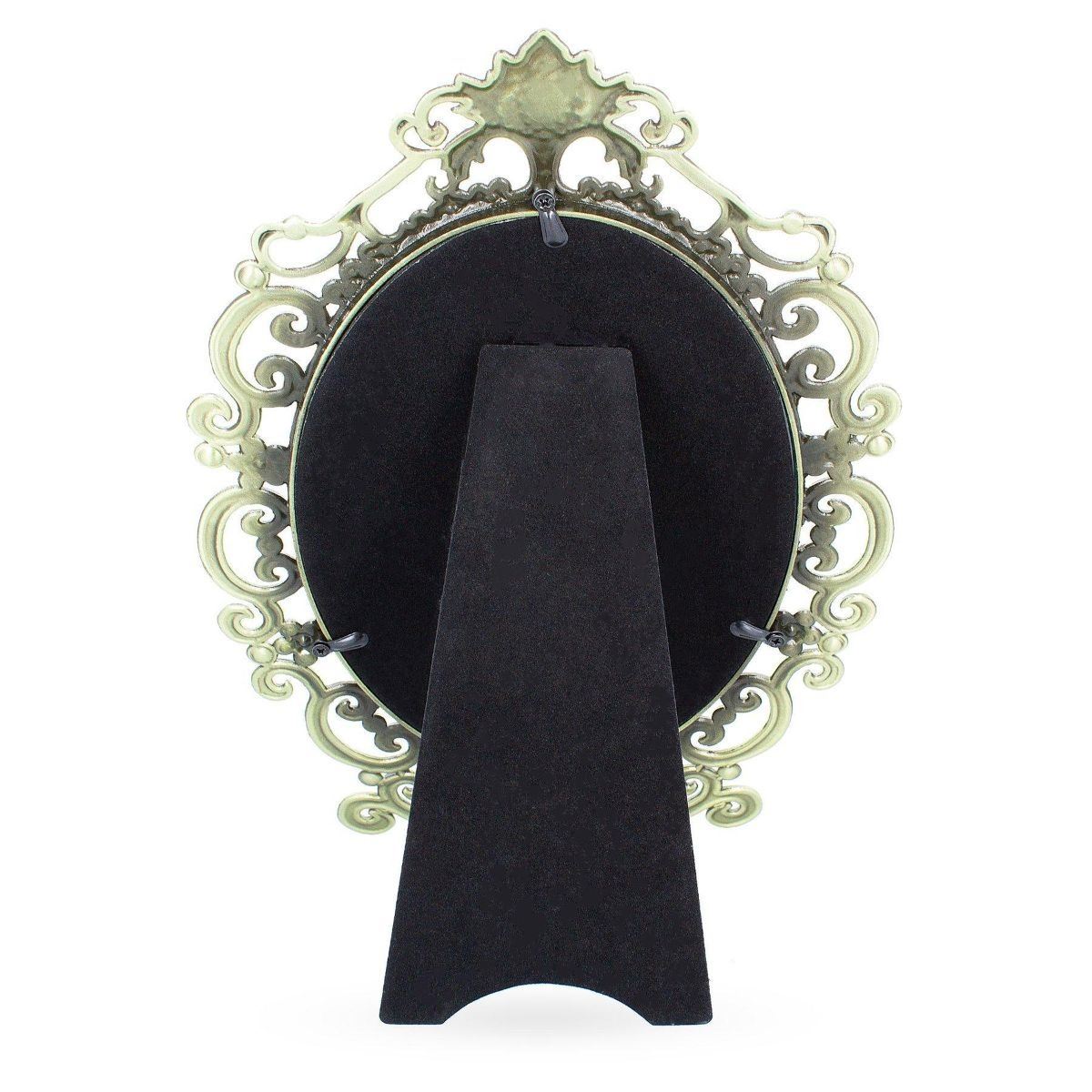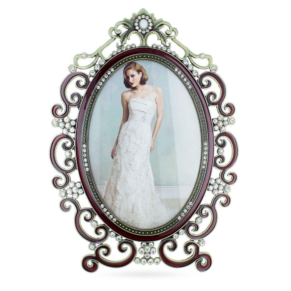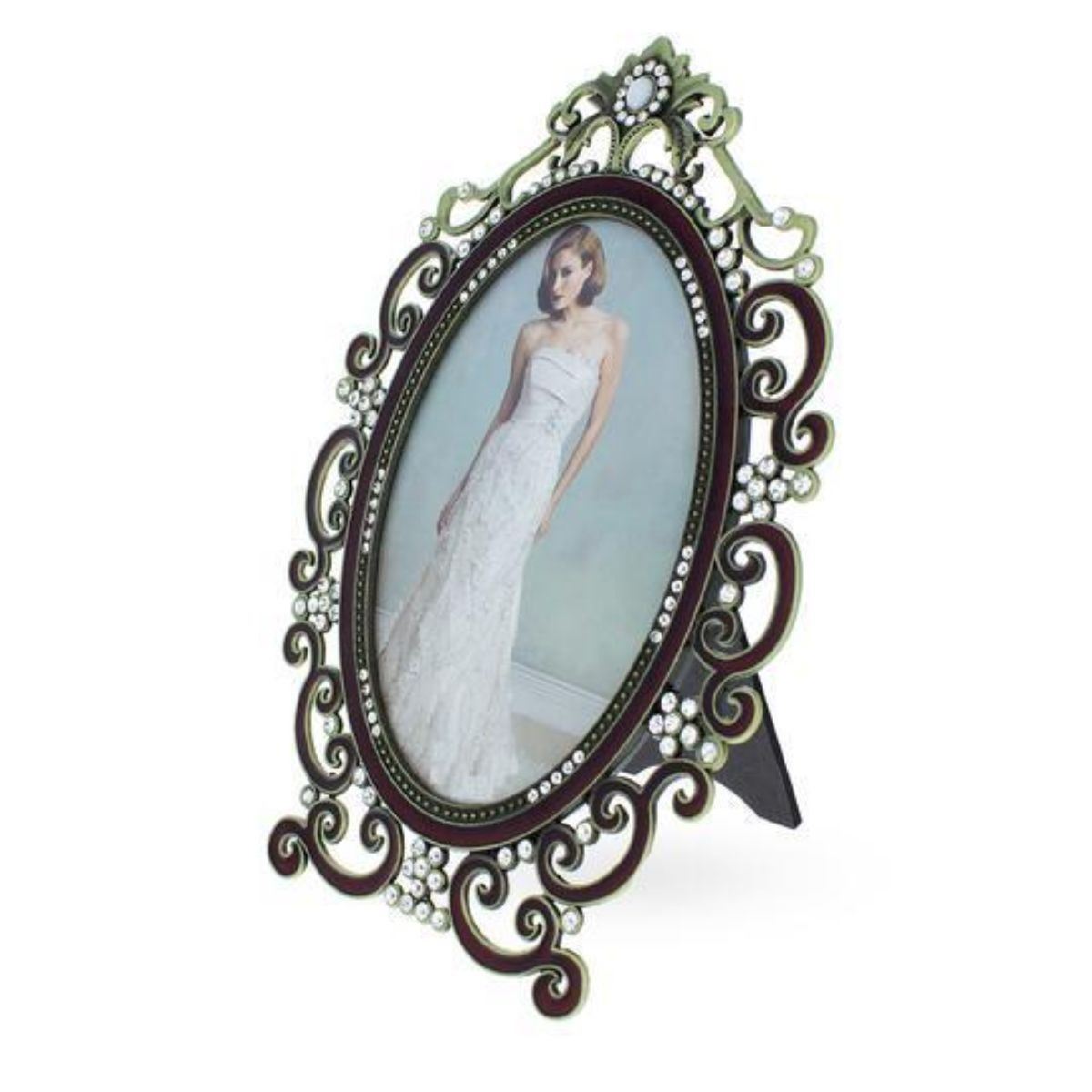Russian hand-painted enamel & gilt over pewter, with embedded Austrian crystals, bridal photo frame.9.73" H X 7.12 " W. Comes with gift box.