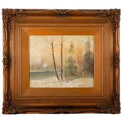 Artist: Illegible, signed lower right. Subject/Title: A Russian winter landscape. Date Created: 19th century. Medium: Oil on canvas. Size Image: 9 inc