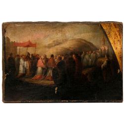 Artist: Unsigned. Subject/Title: A religious procession. Date Created: 17th/18th century. Medium: Oil on canvas. Size Image: 11 1/2 inches high 16 1/2