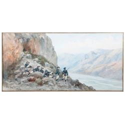 Artist: Pierre Comba. Subject/Title: Soldiers in an Alpine Landscape. Date Created: Late 19th/ early 20th century. Medium: Watercolor on paper. Size I