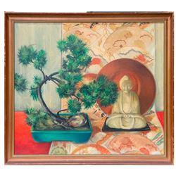 Artist: Signature illegible (lower left). Subject/Title: Still life. Date Created: Mid 20th century. Medium: Oil on canvas. Size Image: 36 inches high