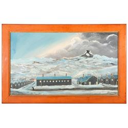 Artist: Jishiro Miyauchi (1888 - 1984). Signed lower right. Title/Subject: Heart Mountain, Wyoming. The artist was interred in the Heart Mnt. W...