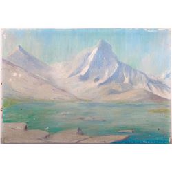 Artist: Signature illegible: Title/Subject: Mt. Whitney. Medium: Oil on board. Date Created: 1904. Size Image: 8 1/2 inches high x 11. Size Frame: 13