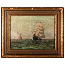 Artist: James Griffin (1850 - 1931). Signature lower left. Subject/Title: Seascape with ship. Date created: Late 19th/ early 20th century. Medium: Oil