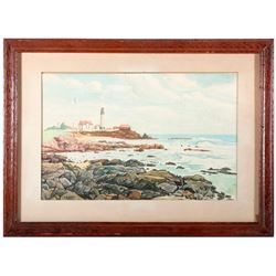Two framed coastal scenes, a watercolor and oil on board, the largest measuring 13 12/ inches high x 18 1/2. Paint loss to oil.