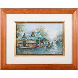 Artist: Attributed to Hans Snel (1925 - 1998). Title/Subject: Balanese Temple scene. Date: 1963. Medium: Ink and pastel on board. Size Image: 10 inche