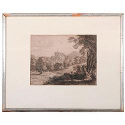 Artist: Illegible signature lower left. Subject/Title: Landscape with village. Date Created: 1781. Medium: Etching. Size Image: 8 inches high x 6. Siz