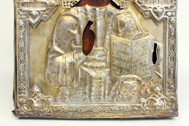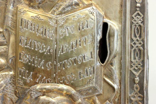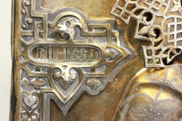 Stamped 84, Moscow vermeil. Ca. 19th century. Approx. 13" x 11". Good condition.