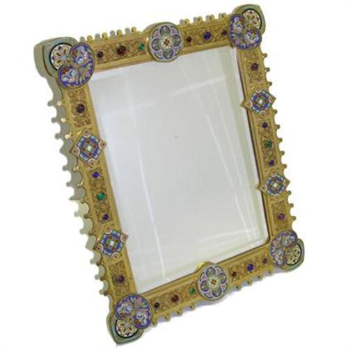 <tr><td>Title:Russian Jewelled Champleve Bronze Mirror</td></tr>