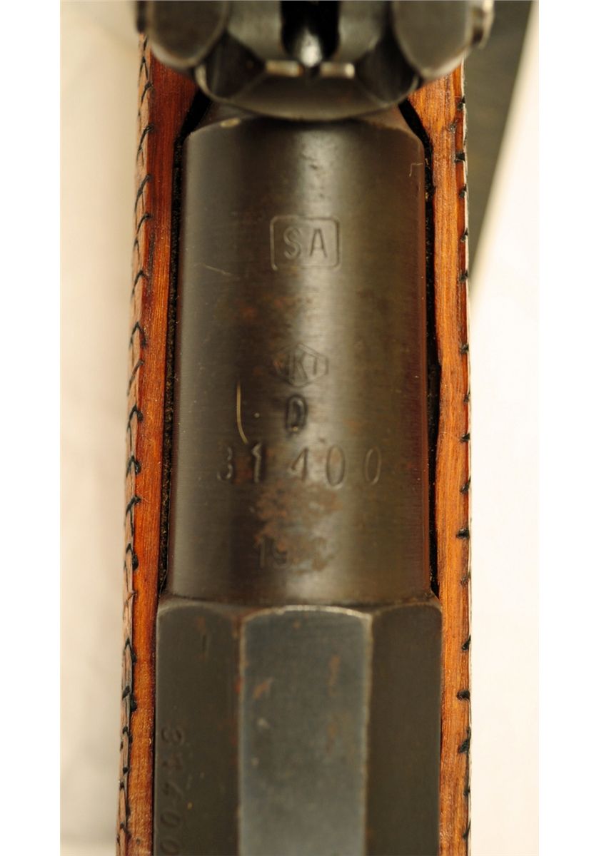 Trench Art Hand Carved, Snake Skin Stock, Model 1938 Mosin Nagant, Russian Bolt Action Rifle, 7.62X54R, , with leather sling.Ser. 31400. Rifle is in good condition. See photos for more information. Gun is believed to be but not guaranteed to be in shooting order. Kennedys Auction Service has not attempted to test fire any gun in this auction and all guns are sold "IN AS IS CONDITION" and are not guaranteed to be operational.