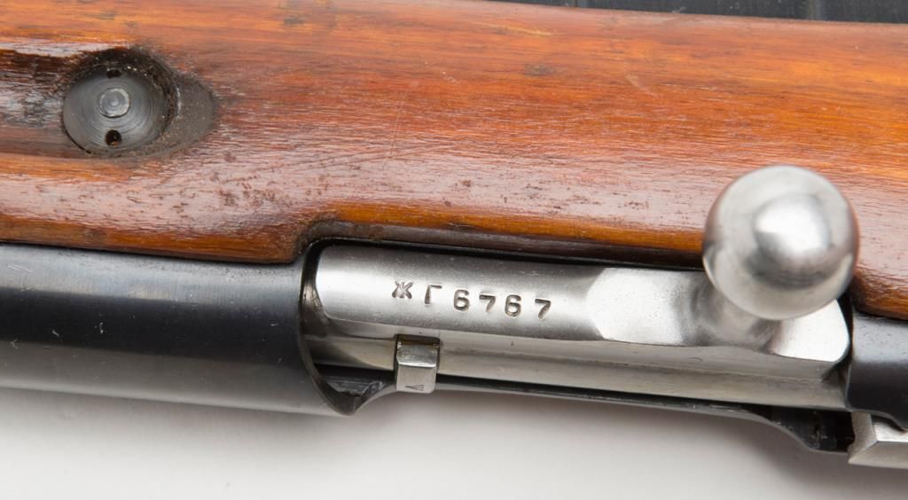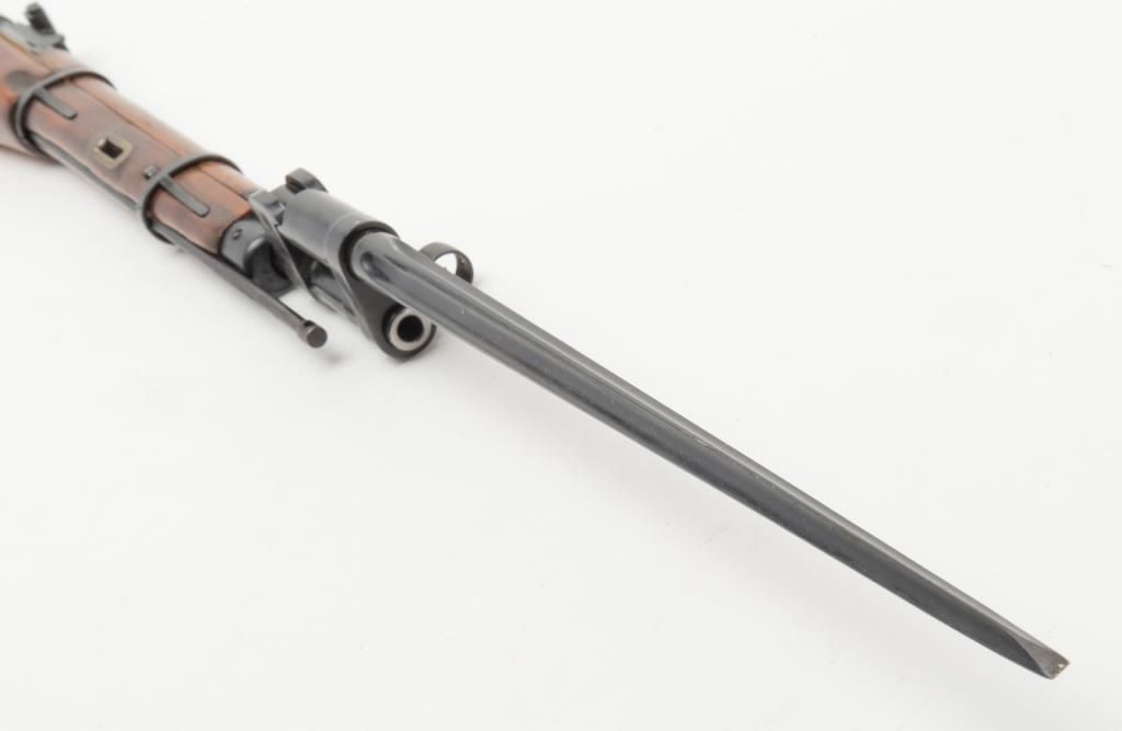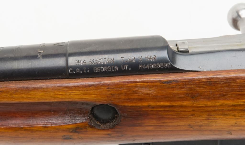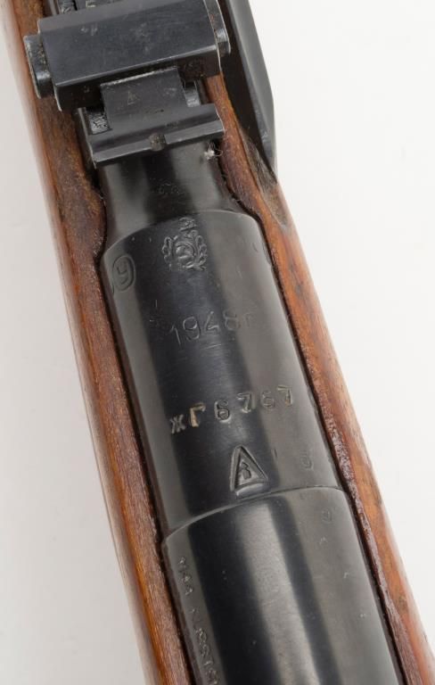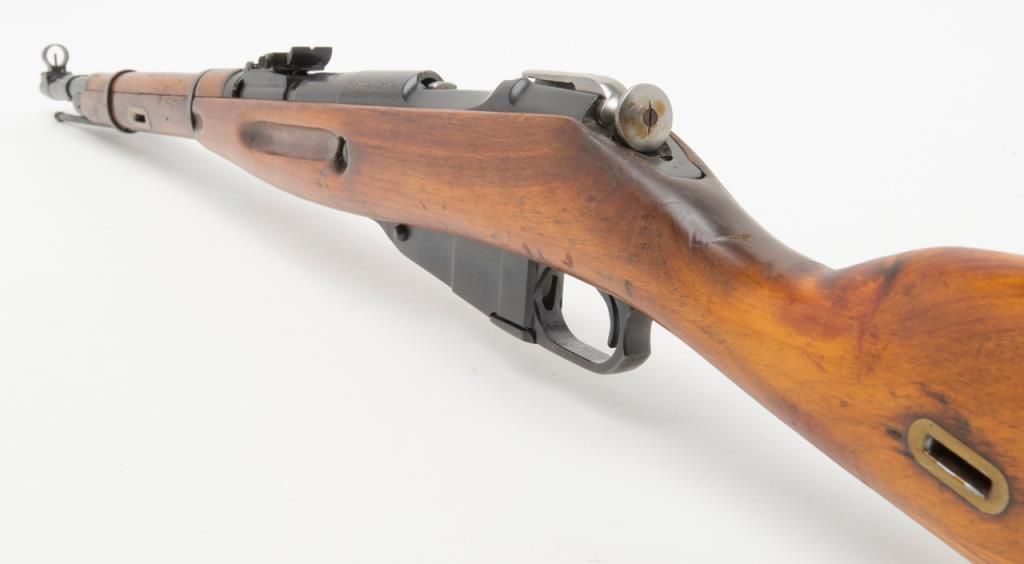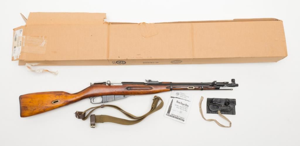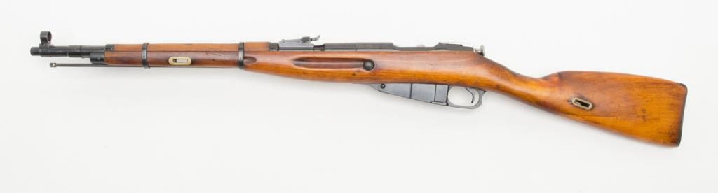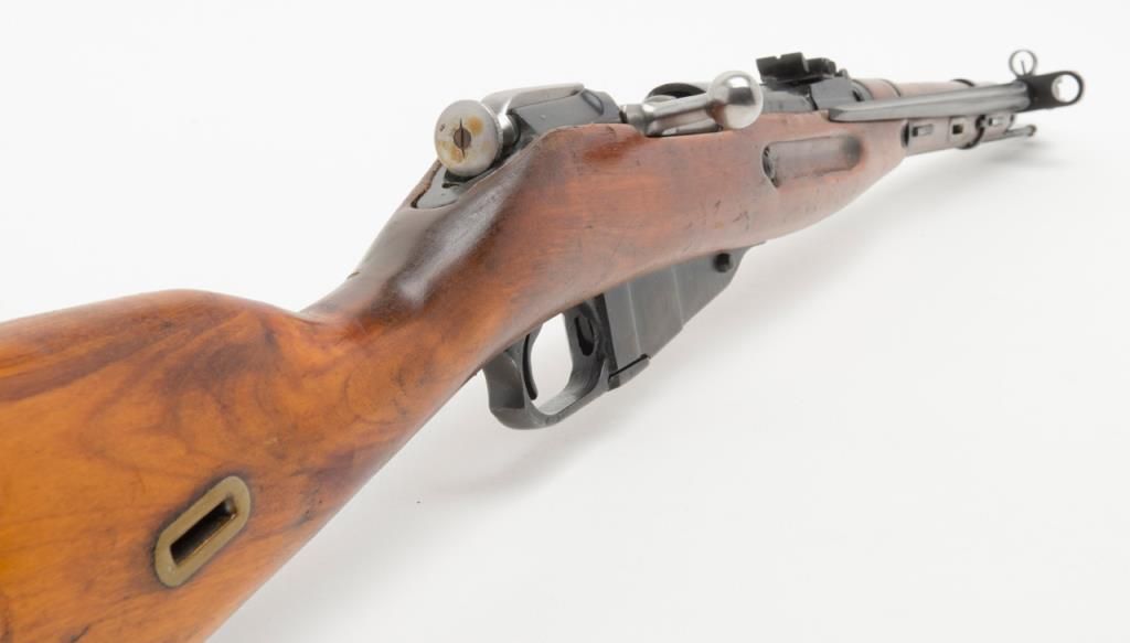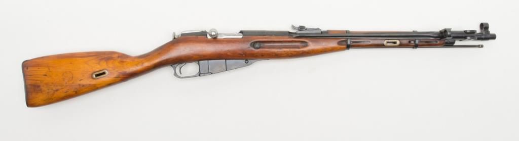 Russian Model 44 Nagant bolt action carbine, 7.62 x 54R mm cal., 21” barrel, import-marked blue finish, folding bayonet, wood stock, #R6767 (M44000500) in overall very good condition with very good bore, crisp action and very good stockas re-conditioned; accompanied by sling, tools and metal oiler. (C&R). Est.: $125-$250.