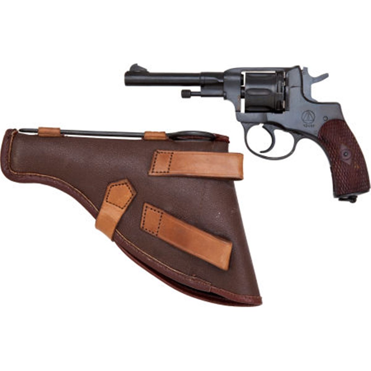 Russian Model Nagant 1944 Revolver. Serial No. N1064, 7.62mm, 3 3/4-inch barrel. Blued with synthetic grips 1944 receiver date with lanyard ring. Includes flap holster, leather lanyard and cleaning rod. Contained in factory box.Condition Excellent, Retains 98-100% of finish.NRA FIREARMS FOR FREEDOM PROGRAM