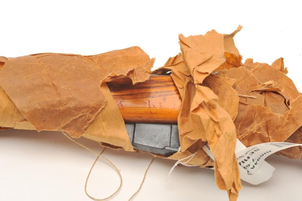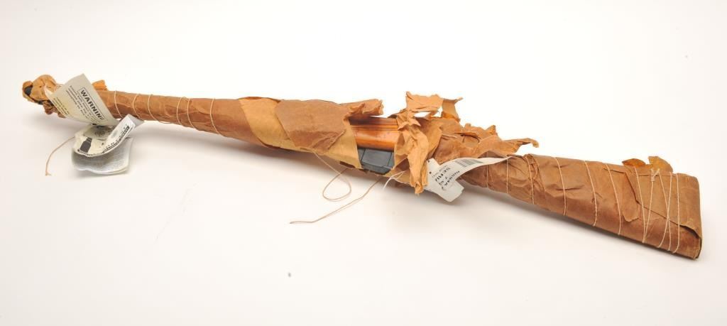 Russian Mosin Nagant M44 bolt action carbine, 7.62 x 54R caliber, serial #LO9084. The carbine is as issued still in the factory paper wrap with bayonet, tags and instructions as attached. The front ring isdated 1946 with Russian proofs. (C+R) Est.: $150-$300.