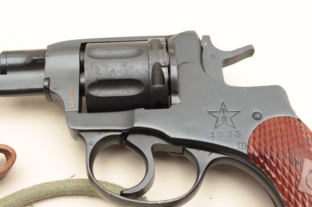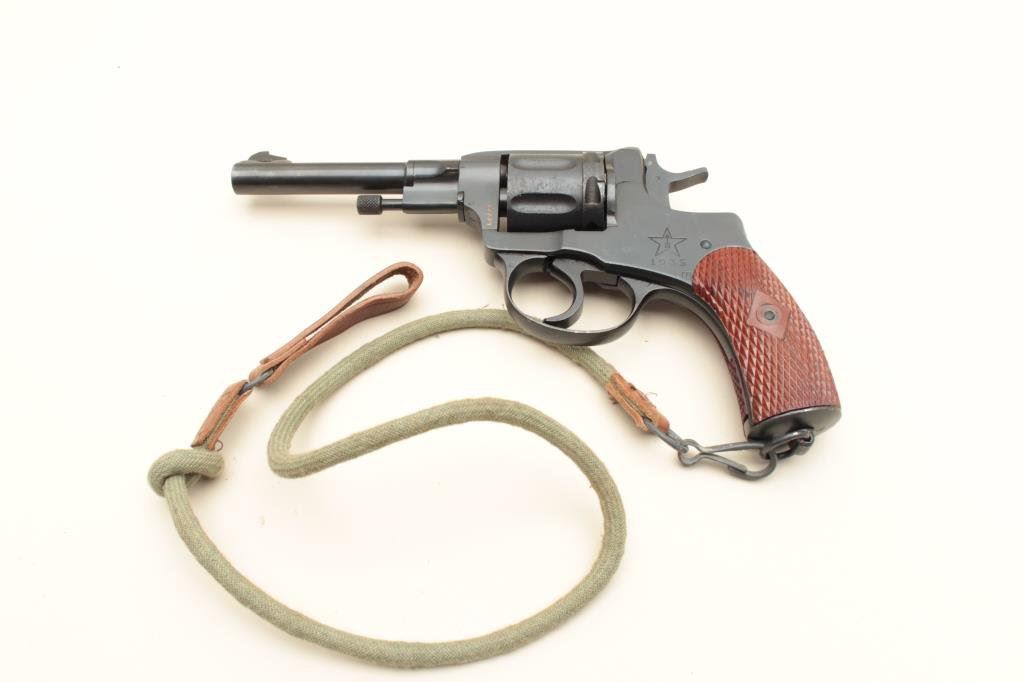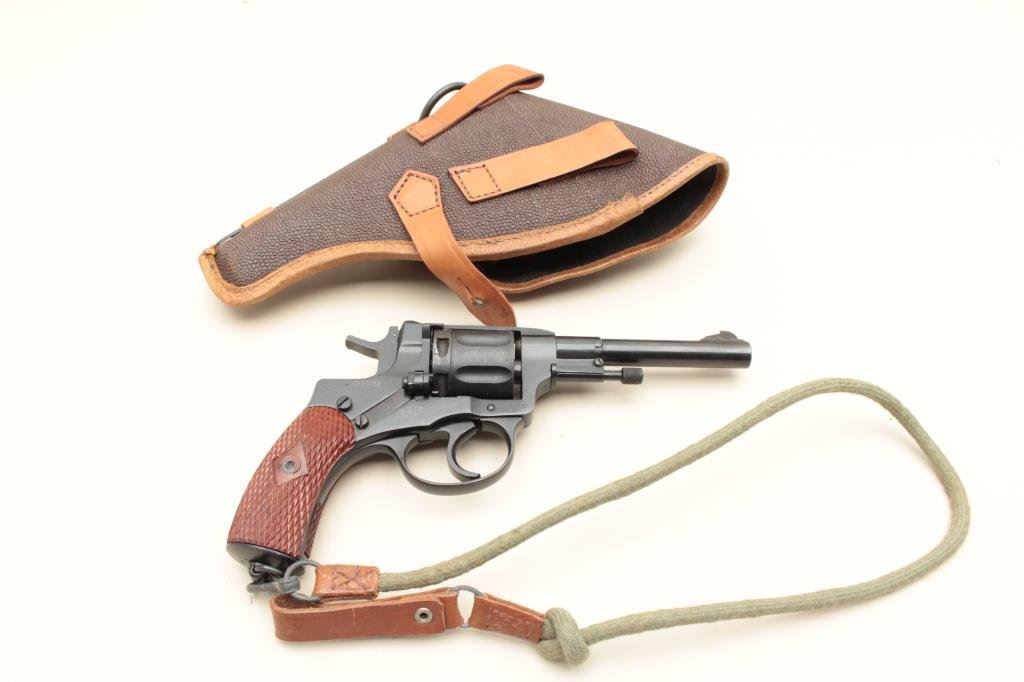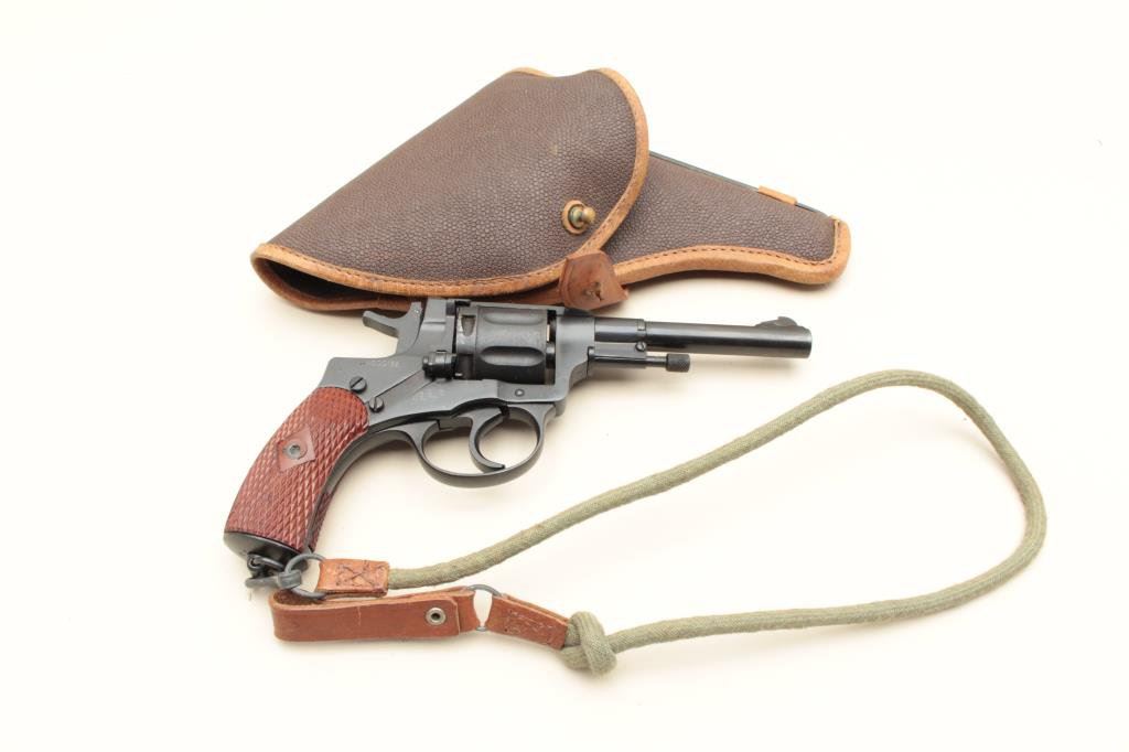 4.5” barrel, re-blued finish, checkered brown grips with lanyard and accompanying flap holster with cleaning rod, S/N 10797, in overall good condition as refinished, with good bore, crisp action good markings and very good grips. (C&R/PPT). Est.: $150-$300.