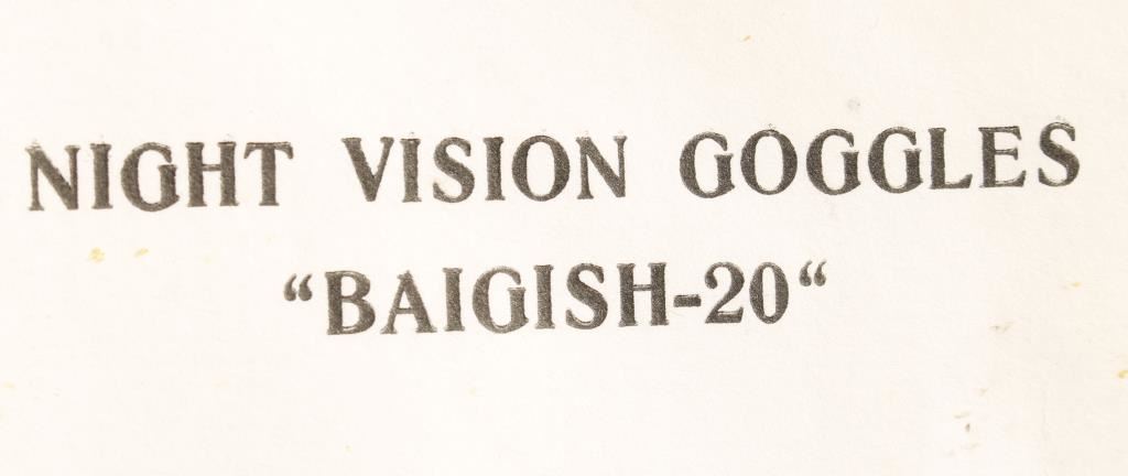 in metal case, Baigish-20. Unable to test function at time of description. Also included a second pair of night goggles-4756RC battery powered type military grade carrying case. Also includes extra batteries and rubber goggle covers