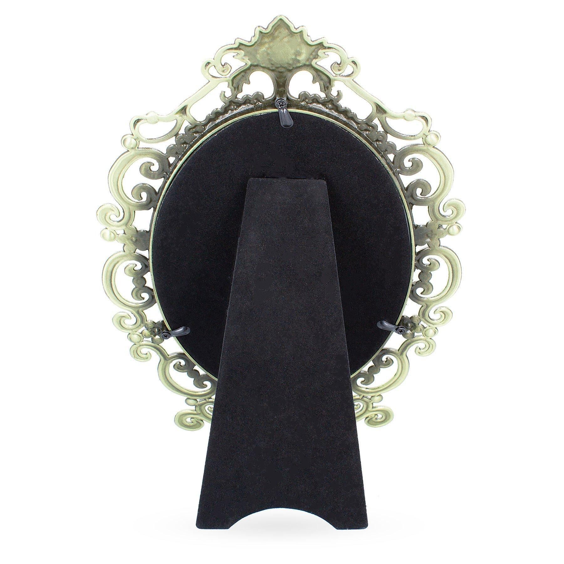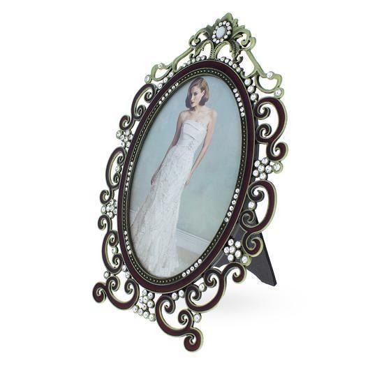 Russian Royal Style Picture Frame 9.73 Inches Tall x 7.12 Inches Wide 24.71 cm Tall x 18.08 cm Wide Enamel Gold Plated Pewter Hand Painted Padded Satin Lined Gift Box This sparkling trinket box is adorned with clear crystals and high-polished enamel. It opens on a hinge and has a magnetic closure to keep the box securely shut. The piece also comes in a beautiful gift box.