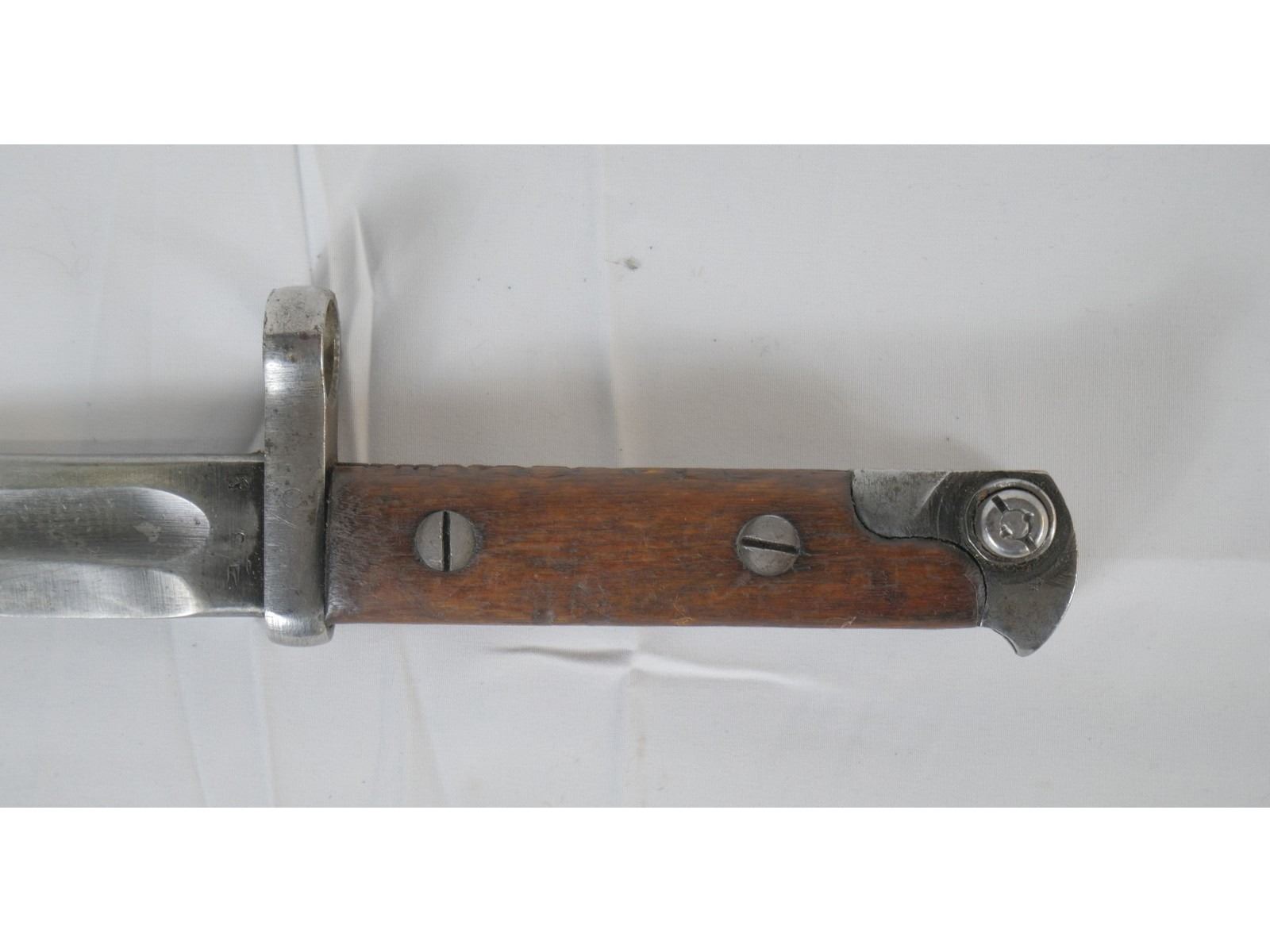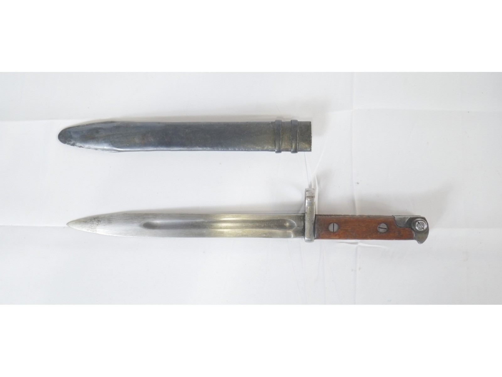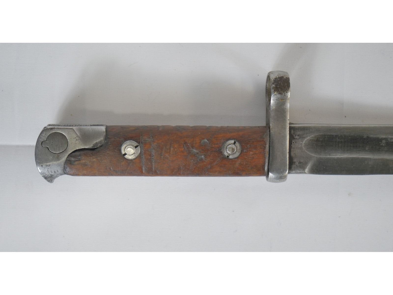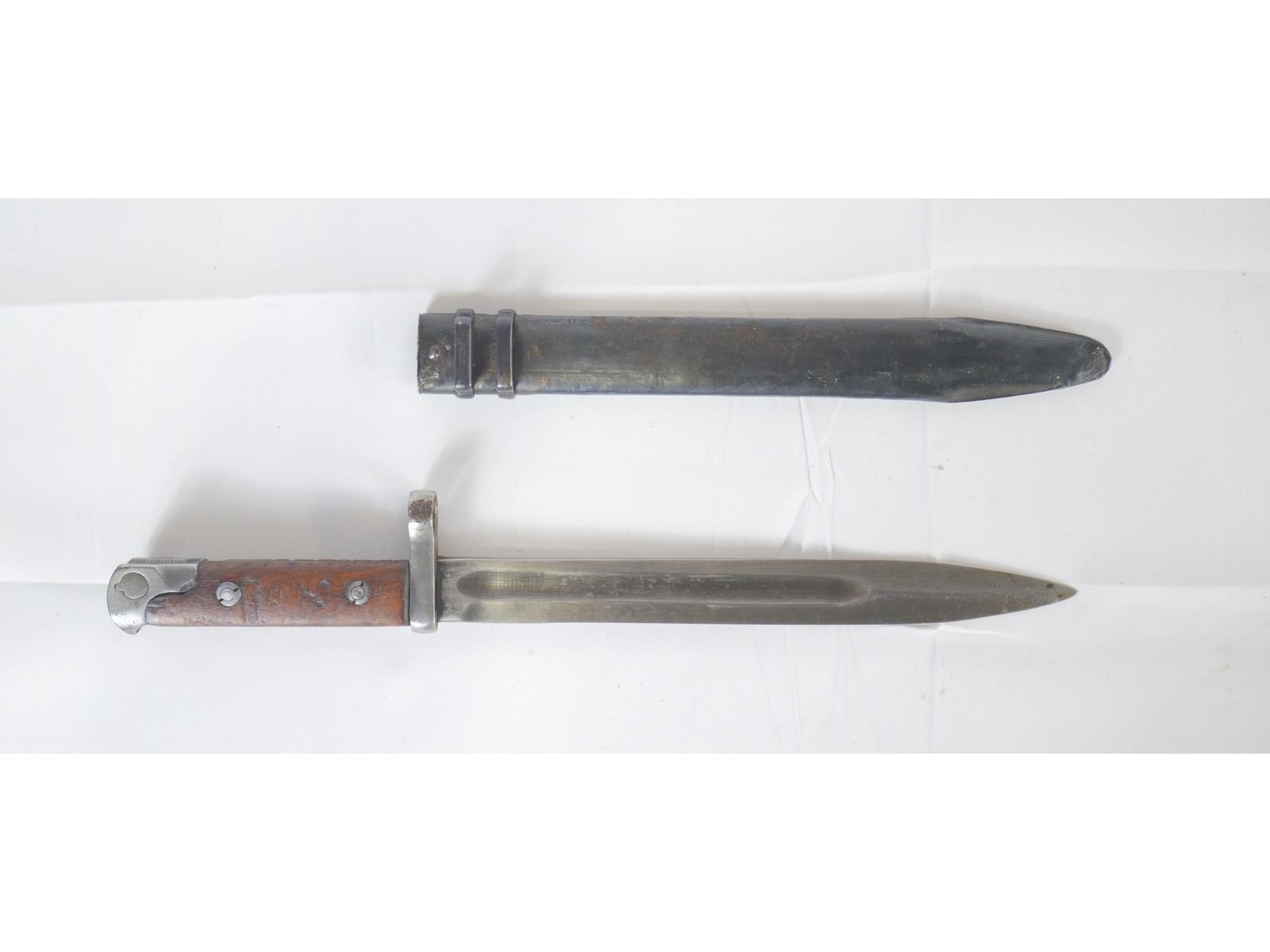 Original, non reproduction with correct scabbard. Well used. With some hand carving to grips. Hard to find accessory.