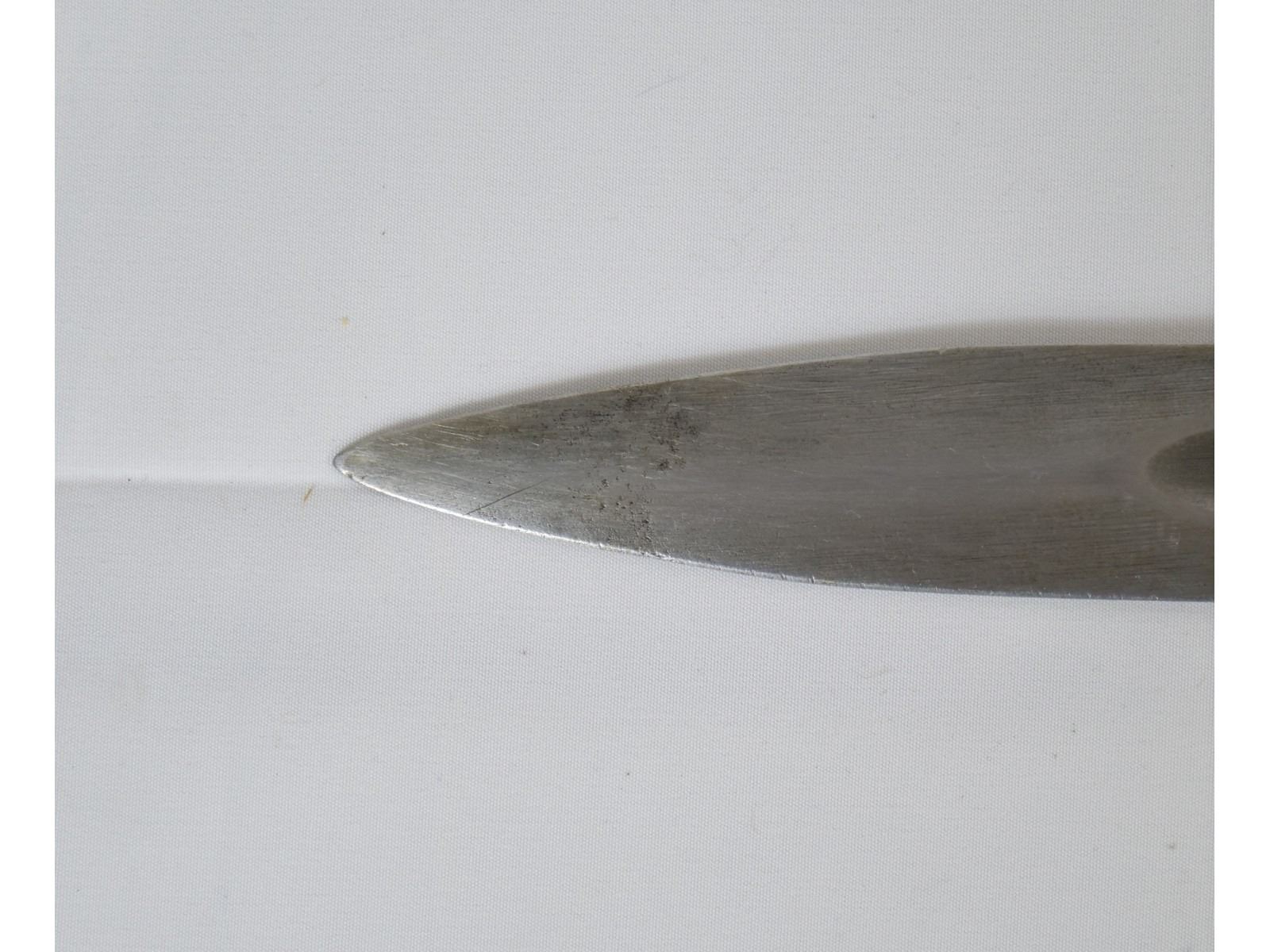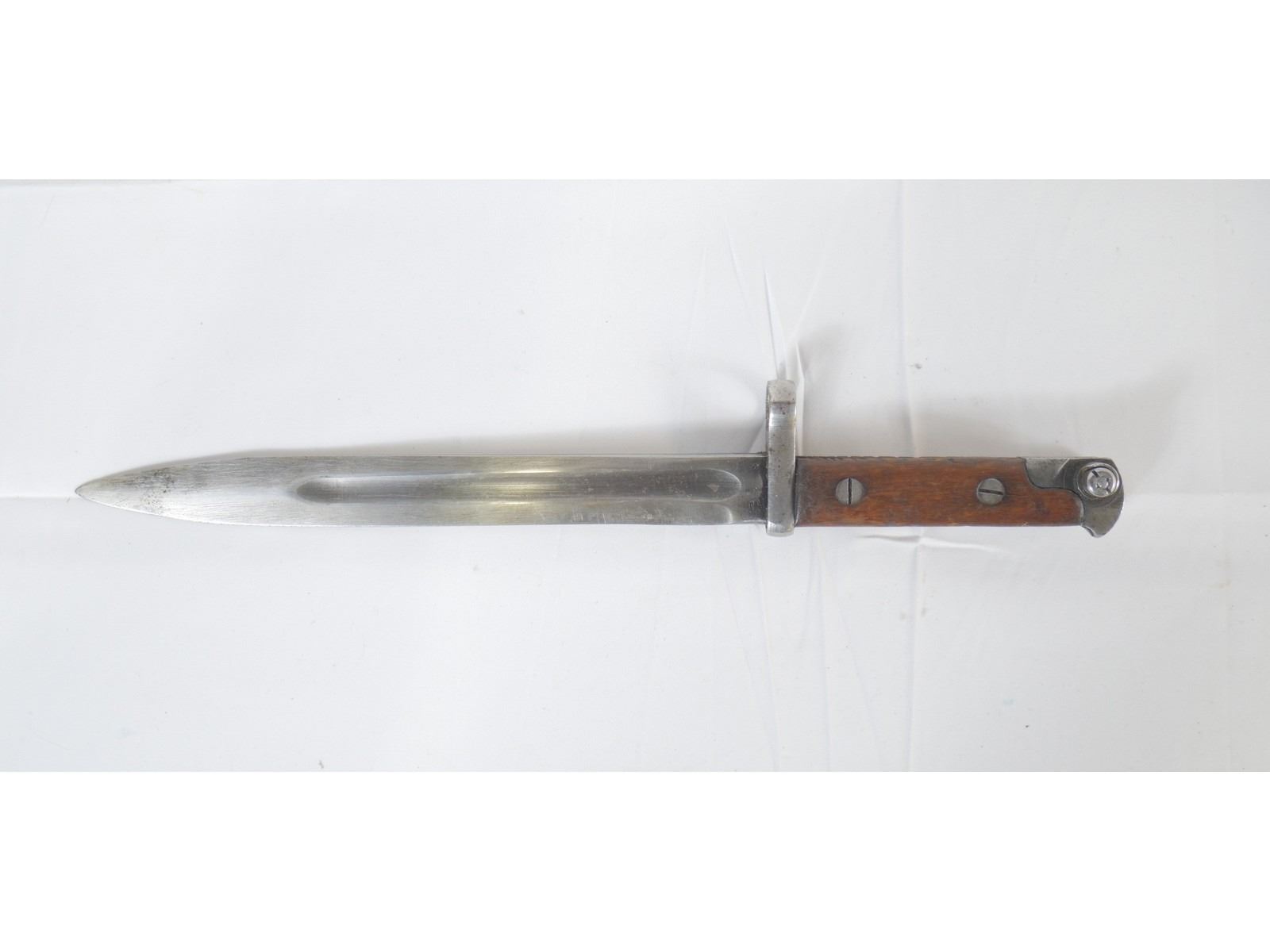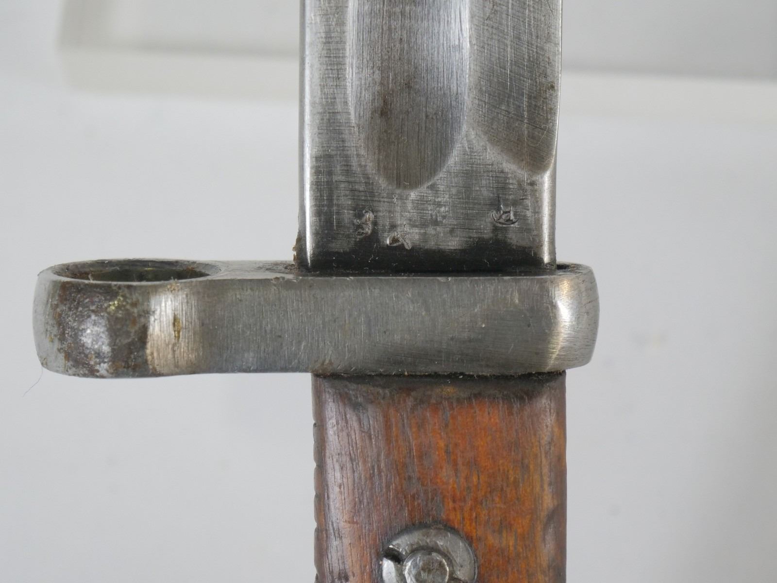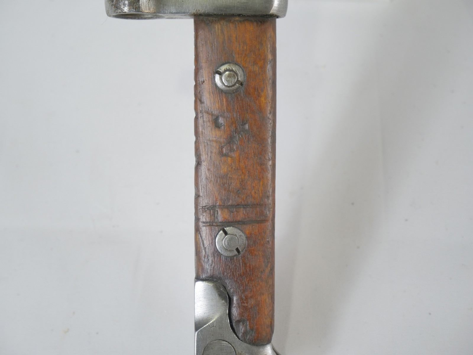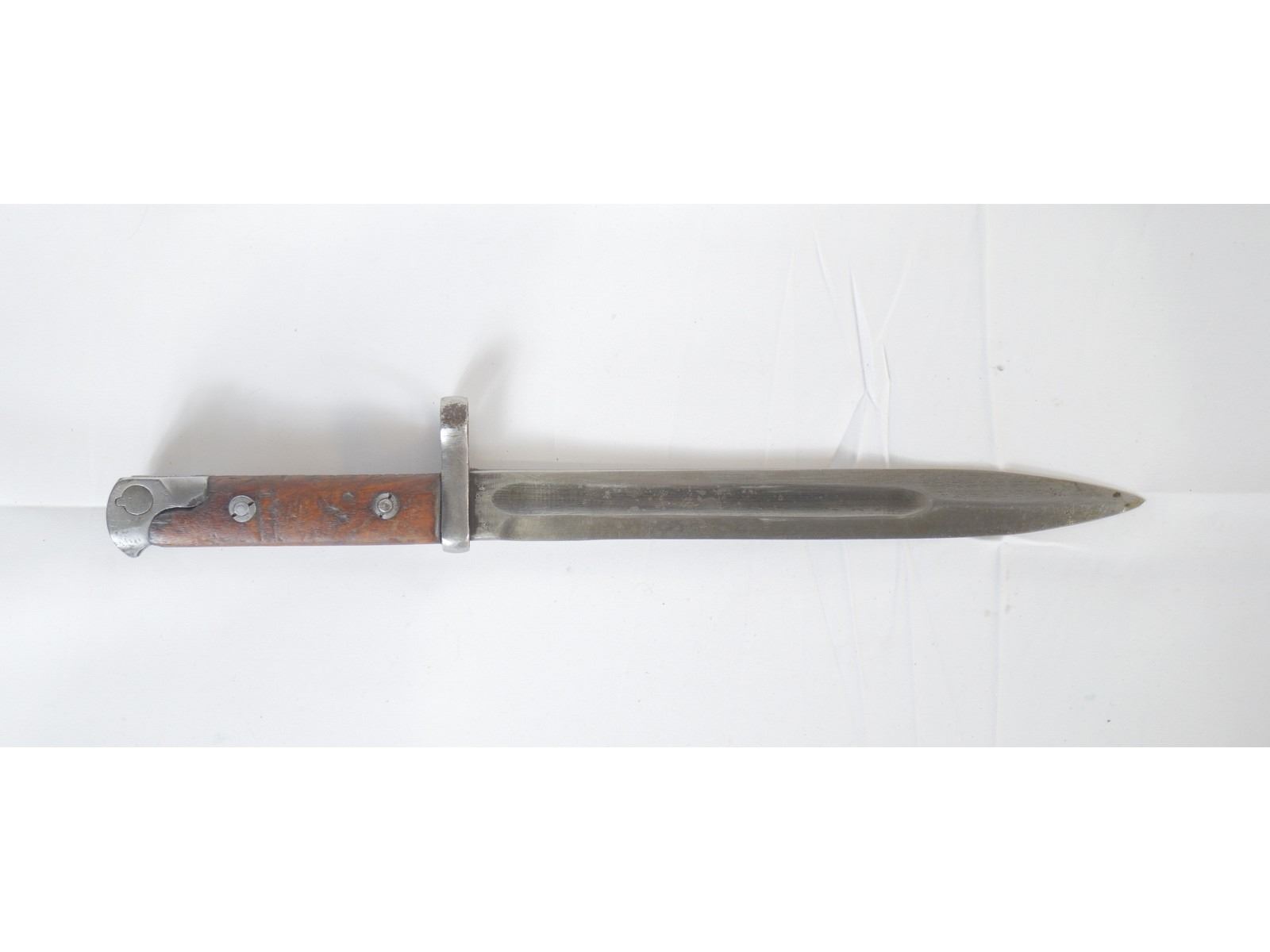 Original, non reproduction with correct scabbard. Well used. With some hand carving to grips. Hard to find accessory.