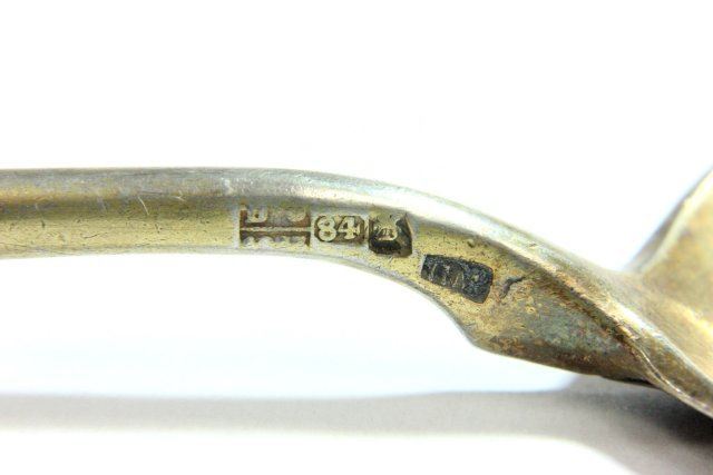Etched scene on bowl. Stamped 84. Approx. 6" L. Approx. 39 g or 1.25 ozt.