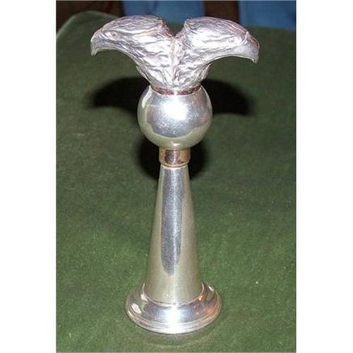 Fine Russian table Silver corkscrew according to the Hall mark about 1908 to 1917, standing 6.25 inches H and 3,25 inches wide, iron screw, and gold decoration right under the eagles heads