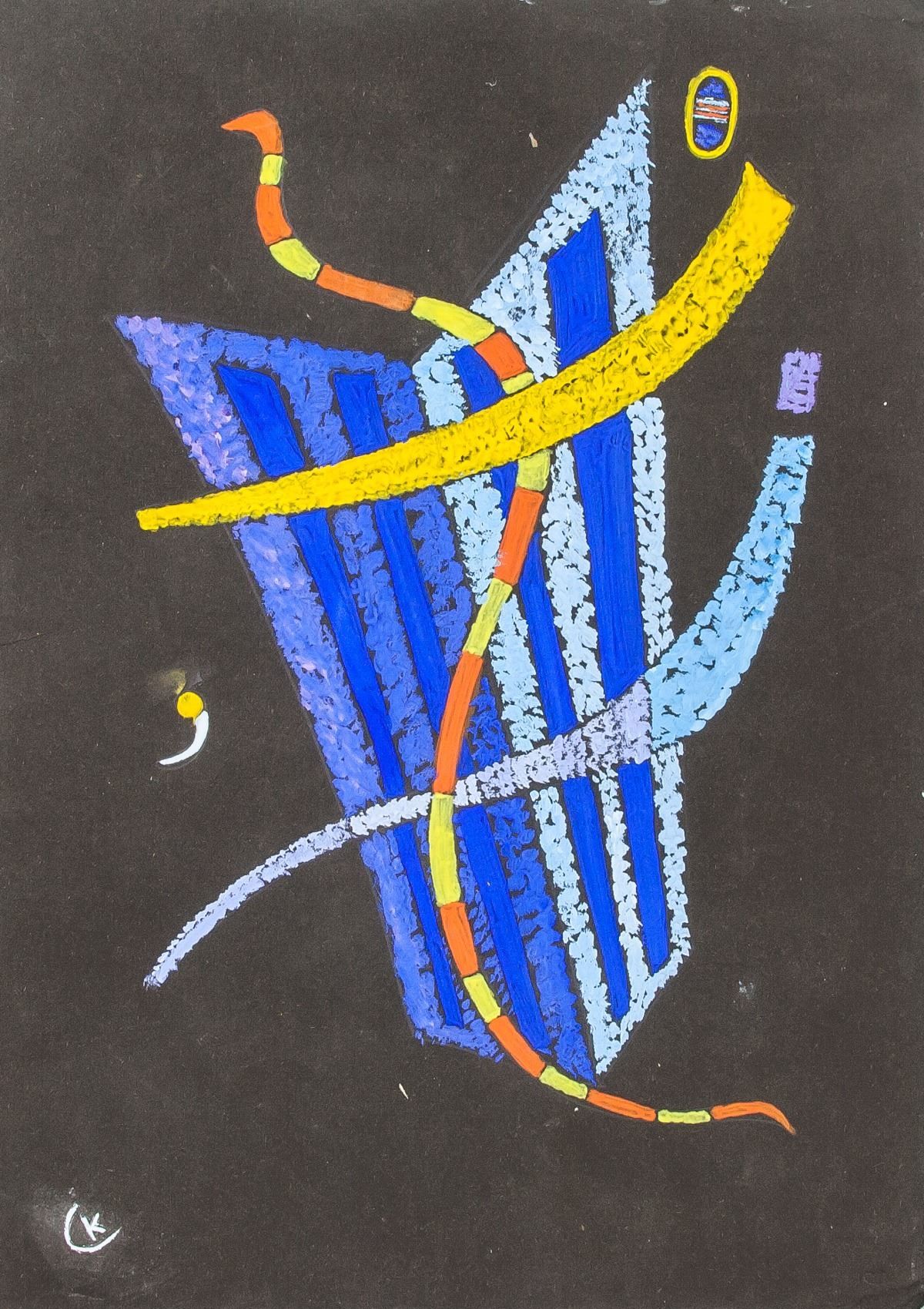 Gouache on paper. Featuring an abstract suprematist composition. Russian Abstract Expressionist School, with possible monogram of Wassily Kandinsky on the lower left corner. Label inscribed INV. 332/05. 35 x 25 cm (13.8 x 9.8 inches). PROVENANCE: Private estate (Perugia, Italy).