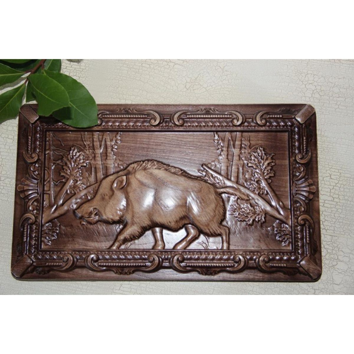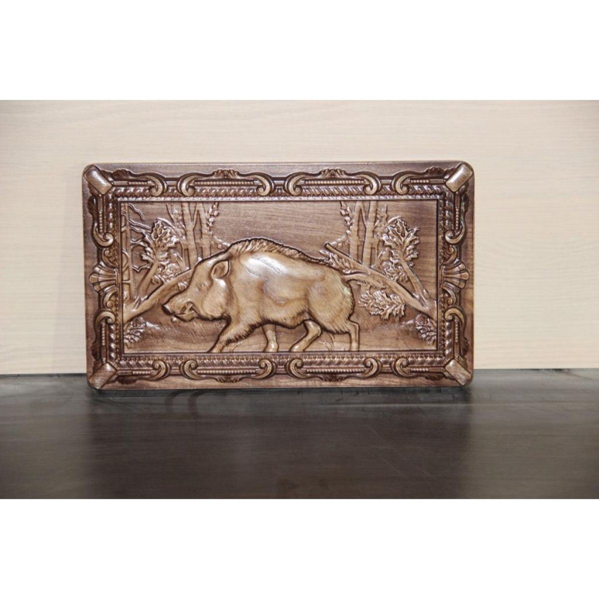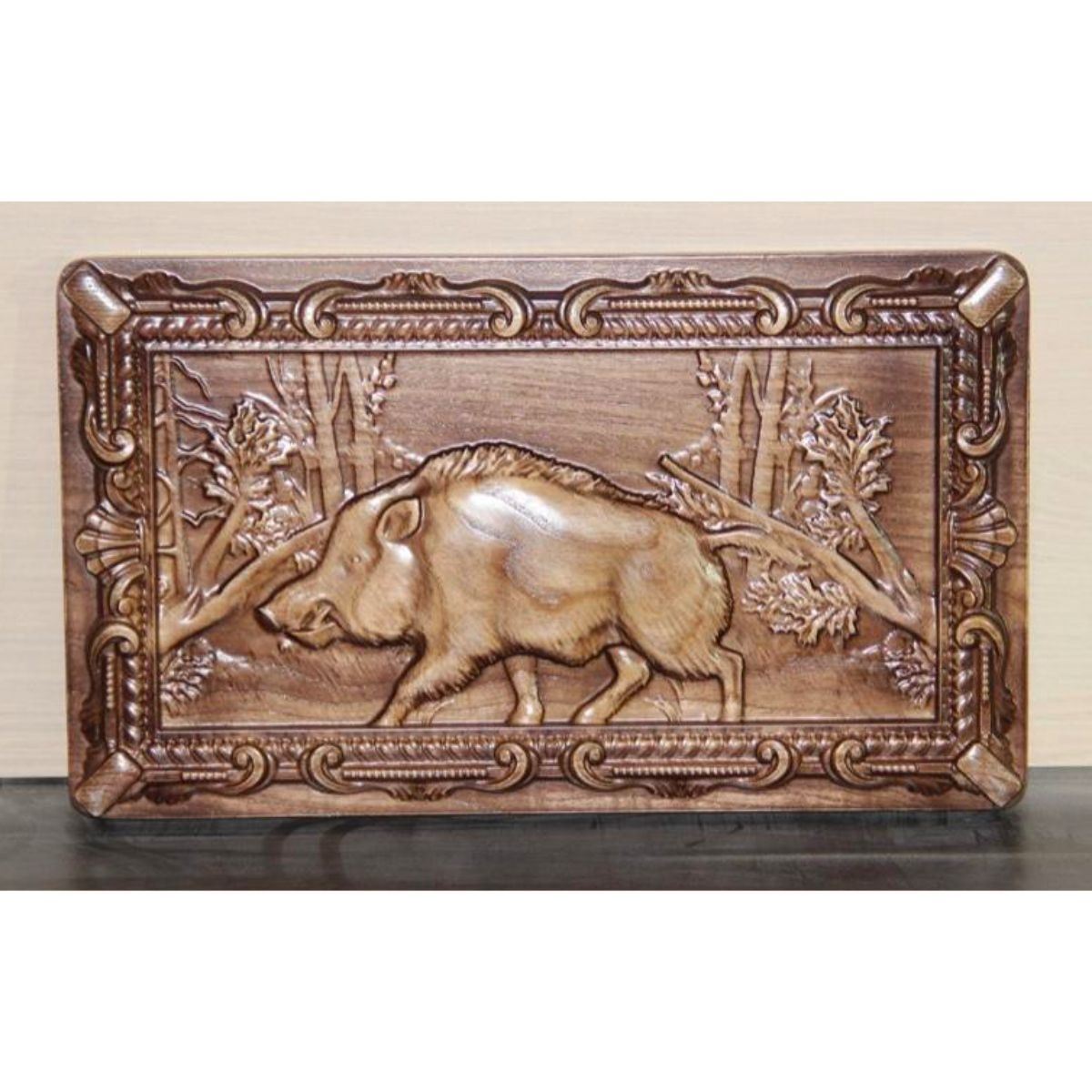 Russian Wild Boar carving, ash wood, serving, cheese, cutting board carving. 11 1/2" X 6 1/2".