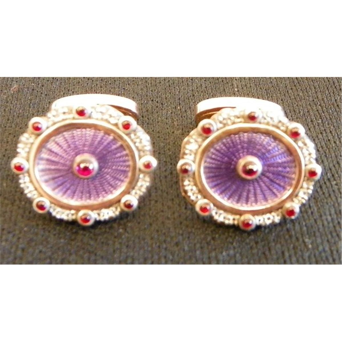 Purple enamel with rubies & diamonds, 14kt rose gold. Please read our terms of sale.
