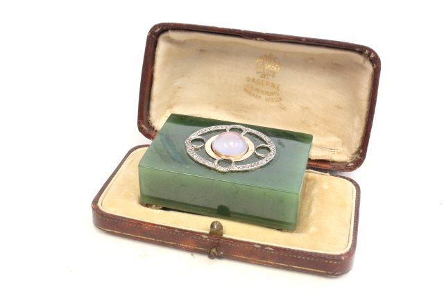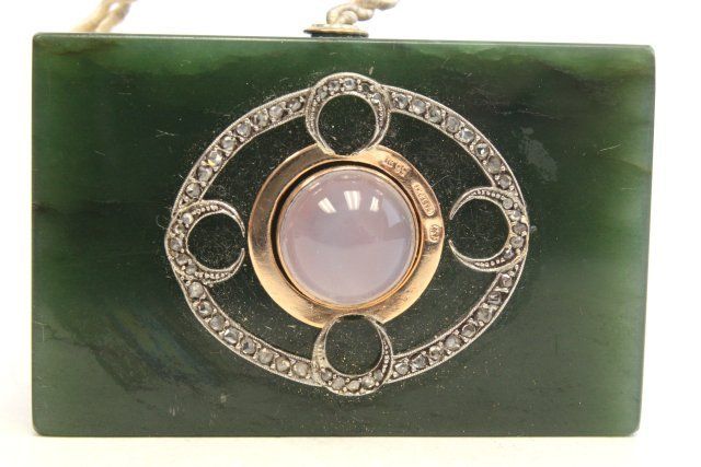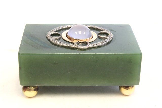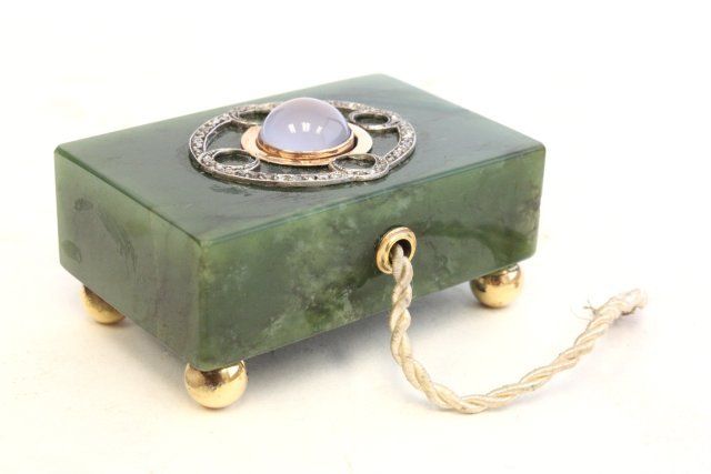Russian nephrite, gold & diamond push bell 2 1/2" x 1 3/4 x 1