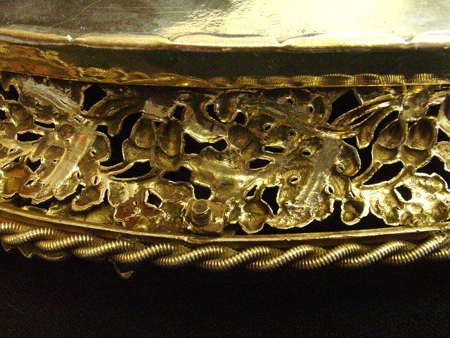 Believed to be Russian 1930's, assay marks & cyrillic monogrammed on top & bottom, "Acorn & Floral" design. Approx. 29.5" L x 17.25" W x 2.25" H, 4214 grams. Please read our terms of sale.