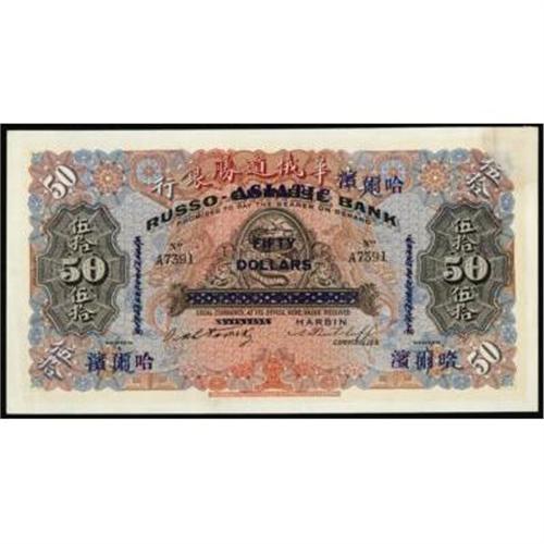 <style type="text/css"> body, td, th { font-family: Arial, Helvetica, sans-serif; font-size: 12px; color: #482424; margin: 0px; padding: 0px; } #header { background-image: url(http://www.bowersandmerena.com/ebay/images/template_v3_01.gif); clear: both; background-color: #590303; border-top-width: 2px; border-top-style: solid; border-top-color: #B38C4F; } #header #header_wrapper { height: 75px; clear: both; width: 800px; margin-right: auto; margin-left: auto; background-image: url(http://www.bowersandmerena.com/ebay/images/template_v3_03.gif); background-repeat: no-repeat; background-position: right; color: #F3EDCC; } #header #header_wrapper #header_logo { float: left; height: 75px; width: 444px; background-image: url(http://www.bowersandmerena.com/ebay/images/template_v3_02.gif); background-repeat: no-repeat; font-size: 10px; text-transform: capitalize; color: #B38C4F; } #header #header_wrapper #header_right { float: left; height: 75px; width: 356px; text-align: right; } #header #header_wrapper #header_right #headerLoginBtn { margin-bottom: 30px; } #header #header_wrapper #header_right input#txtSearch { color: #B49056; border: 1px solid #B49056; width: 175px; padding-top: 3px; padding-right: 3px; padding-bottom: 4px; padding-left: 3px; } #nav { height: 37px; background-image: url(http://www.bowersandmerena.com/ebay/images/template_v3_05.gif); clear: both; } #nav #nav_wrapper { height: 35px; width: 800px; margin-right: auto; margin-left: auto; border-left-width: 1px; border-left-style: solid; border-left-color: #B38C4F; } #nav #nav_wrapper a { padding-right: 15px; padding-left: 15px; border-right-width: 1px; border-right-style: solid; border-right-color: #B38C4F; height: 25px; padding-top: 10px; display: block; float: left; text-decoration: none; font-weight: bold; color: #5D0303; } #nav #nav_wrapper a:hover { color: #B38C4F; } #nav #nav_wrapper #search { float: right; padding-top: 7px; } #nav #nav_wrapper #search #txtSearch { font-family: Arial, Helvetica, sans-serif; font-size: 10px; text-transform: uppercase; color: #D2AE75; border: 1px solid #B38C4F; padding: 3px; } #content_bgd { background-image: url(http://www.bowersandmerena.com/ebay/images/template_v3_09.gif); background-repeat: repeat-y; background-position: center; padding-top: 15px; padding-bottom: 15px; background-color: #FBFBDB; } #content_wrapper { clear: both; height: auto; width: 800px; margin-right: auto; margin-left: auto; } .LotDetailWhite { line-height:normal; font-size:13px; font-family: arial,helvetica,sans-serif; color: White; font-weight: bold; } .LotDetailInformation { line-height:normal; font-size: 13px; font-family: arial,helvetica,sans-serif; } .LotDetailMessage { line-height:normal; font-size: 13px; font-family: arial,helvetica,sans-serif; color: red; } } tr.HeaderAuctionTitle td { color: #000000; font-weight: bold; padding: 2px; background-image: url(http://www.bowersandmerena.com/ebay/images/template_v3_05.gif); background-repeat: repeat-x; border-bottom-width: 1px; border-bottom-style: solid; border-bottom-color: #B38C4F; } table.AuctionSummary a, table.AuctionSummary a:link, table.AuctionSummary a:visited { color: #0000FF; text-decoration: none; } } td.tableHeaderLeft { border-left-width: 1px; border-left-style: solid; border-left-color: #B38C4F; } td.tableHeaderRight { border-right-width: 1px; border-right-style: solid; border-right-color: #B38C4F; } td.tableCellMiddle { border-left-width: 1px; border-left-style: solid; border-left-color: #B38C4F; border-right-width: 1px; border-right-style: solid; border-right-color: #B38C4F; padding: 5px; } tr.footer td { border-top-width: 1px; border-top-style: solid; border-top-color: #B38C4F; } </style> </head> <body> <div id="header"> <div id="header_wrapper"> <div id="header_logo"> </div> <div id="header_right"> </div> </div> </div> <div id="nav"> <div id="nav_wrapper"> <a href="http://www.bowersandmerena.com">Our eBayLive Auctions</a> <a href="#PaymentInfo">Payment Information</a> <a href="#ShippingInfo">Shipping Information</a> <a href="#About">About Bowers and Merena</a> </div> </div> <div id="content_bgd"> <div id="content_wrapper"> <table width="100%" border="0" cellpadding="5" cellspacing="0" class="AuctionSummary"> <tbody> <tr class="HeaderAuctionTitle" style="height: 25px;"> <td align="left" class="tableHeaderLeft" > </td> <td align="center" class="tableHeaderRight"> <span style="font-size: large;">Lot #496. Foreign Banks. Russo-Asiatic Bank.</span> </td> </tr> <tr> <td colspan="3" class="tableCellMiddle"> P-S465, 50 Dollars no date (1910). A simply spectacular and beautiful piece issued at Harbin, Choice AU with some paper adhering to upper right corner on face. Printed by Bradbury, Wilkinson & Co. The name of this bank was formerly The Russo-Chinese Bank until around 1910. This and the following two examples show the overprinted new name above the dragon at center. The note appears as fresh and appealing as the day it was made!