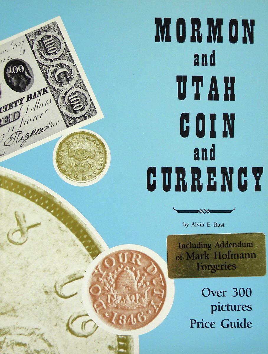 Rust, Alvin E. MORMON AND UTAH COIN AND CURRENCY. Salt Lake City, 1984. 4to, original blue leatherette, gilt; jacket. viii, 247 pages, illustrated. Inscribed by the author. Fine. Includes an addendum written in response to the forgeries created by Mark Hofmann. Still a standard work.
