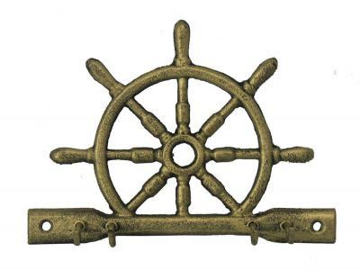 Rustic Dark Blue Whitewashed Cast Iron Ship Wheel w/ Ho **|**|** Rustic Dark Blue Whitewashed Cast Iron Ship Wheel w/ Hooks 8"