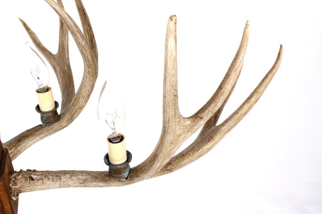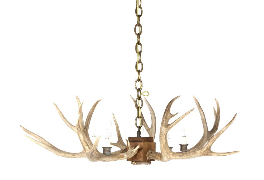 Available for your bidding pleasure we have a rustic Deer Antler mold chandelier. The chandelier shows five realistic antler molds with four to five forks on each antler. The piece also features classic candelabra lights. The item has been tested and it is in good working condition. It measures 31" X 30" X11". The chain measures 33" tall.
