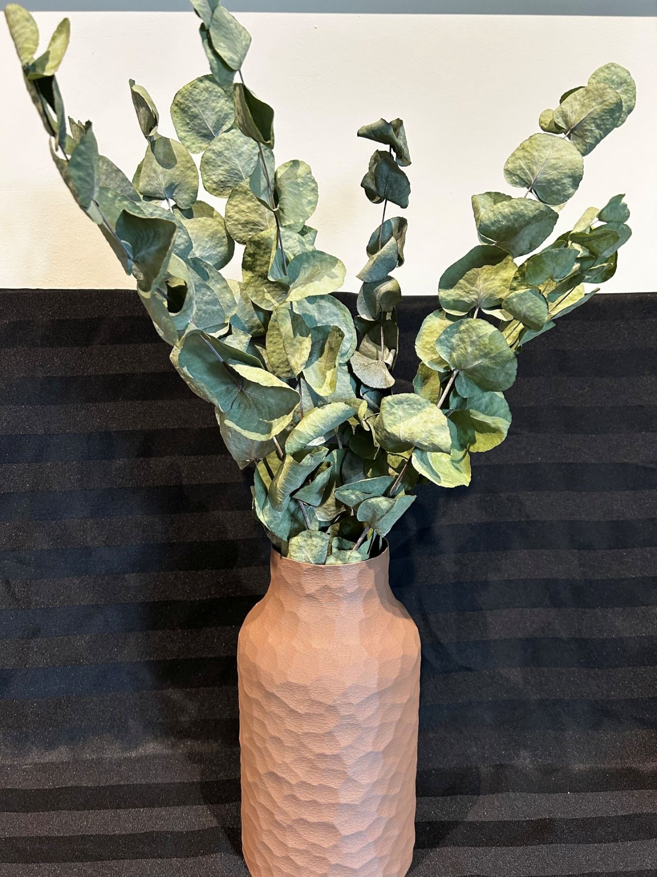 Bring a touch of natural elegance to any space with this stunning eucalyptus arrangement displayed in a beautifully crafted textured 3d printed vase. The soft green tones of the eucalyptus leaves pair perfectly with the earthy, hammered finish of the vase, creating a look that is both modern and timeless.