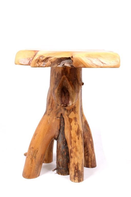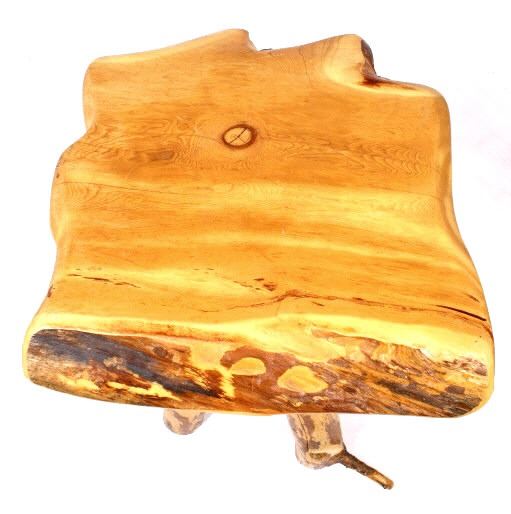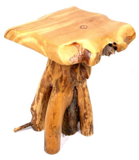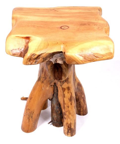 For your bidding pleasure is this Rustic Cedar Log End Table. This end table is in pristine condition and sturdily built to last. With a unique center that was hand picked to have built in legs. This is a particular piece is well sanded and hand made with the table top chosen for its peculiar shape that accentuates itself hand chosen and carefully made with a near right angle corner to fit in unique space with in the home place. The measurements of this end table are 30 1/2" x 23" x 23".