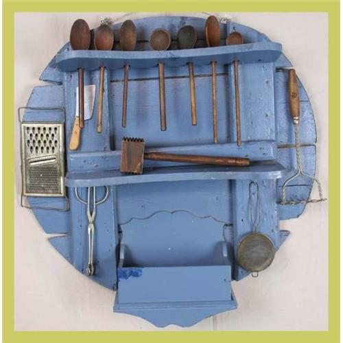 </STRONG>Title: 1940 Dutch Large Blue Rustic Kitchen Rack Cooking Utensils </STRONG><P>Item #: 7-293-0</P><P>Comment: The perfect Decorator piece for your rustic kitchen! Assorted kitchen utensils included.</P><P>Condition: In overall good condition. Shows normal wear due to age and use.</P><P>Dimensions (in.): 28.5H 30W 6.5D </P><P>Age (ca.): 1940</P><P>Origin: Holland</P><P>Size: Large</P><P>Color: Blue</P><P>Style: Rustic</P><P>Material: Painted Wood</P><P>Object: Kitchen Rack</P><P>Subject: Cooking Utensils</P><P>Piece Type: Vintage Kitchenware/Copper & Brass/Tools</P><P>Special Message: Because EuroLuxAntiques maintains its own website and lists on other online sites, while also operating a physical store location in Newberry, South Carolina, we reserve the right to end any listing early if no bids have been placed. However, once a bid has been placed, we give our online auction buyers priority and allow the listing to end as scheduled. Because of this, we encourage all of our buyers to place bids early so that your treasured find doesn't sell elsewhere to someone else. Happy bidding and thanks! Aimee & Greg Talbot at EuroLuxAntiques</P> #NTR# Dutch Cooking Utensils Kitchen Rack ...