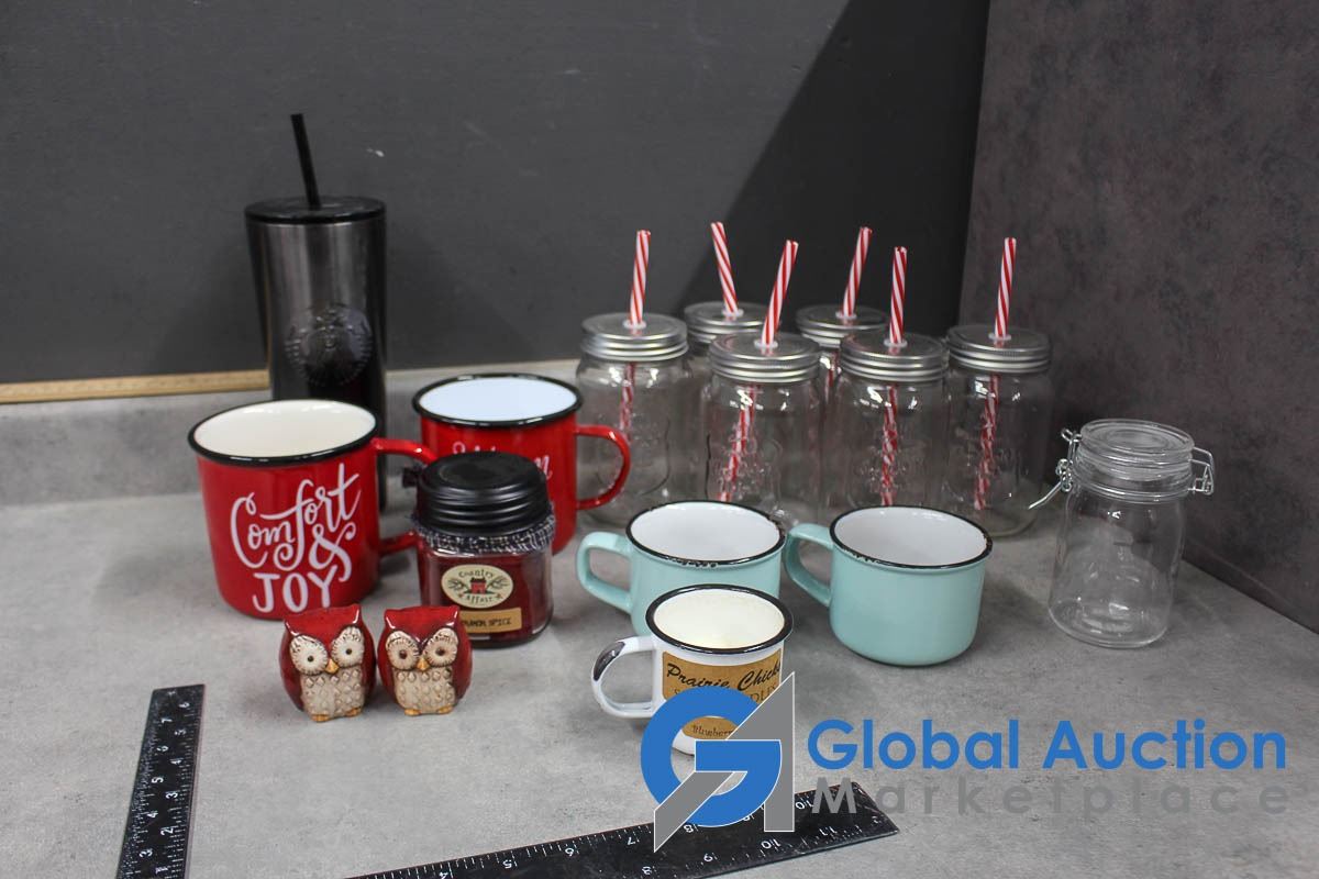 Rustic Look Glasses, Cups, Candles, etc