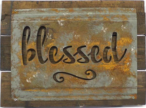 Rustic Metal and Wood ''Blessed'' Sign, measures 9'' x 12''
