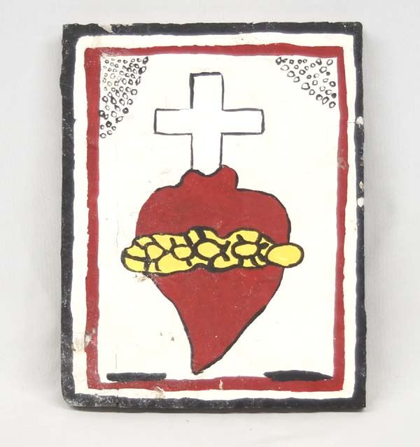 Rustic Mexican Sacred Heart Wood Retablo, measures 7.5'' x 9.5''