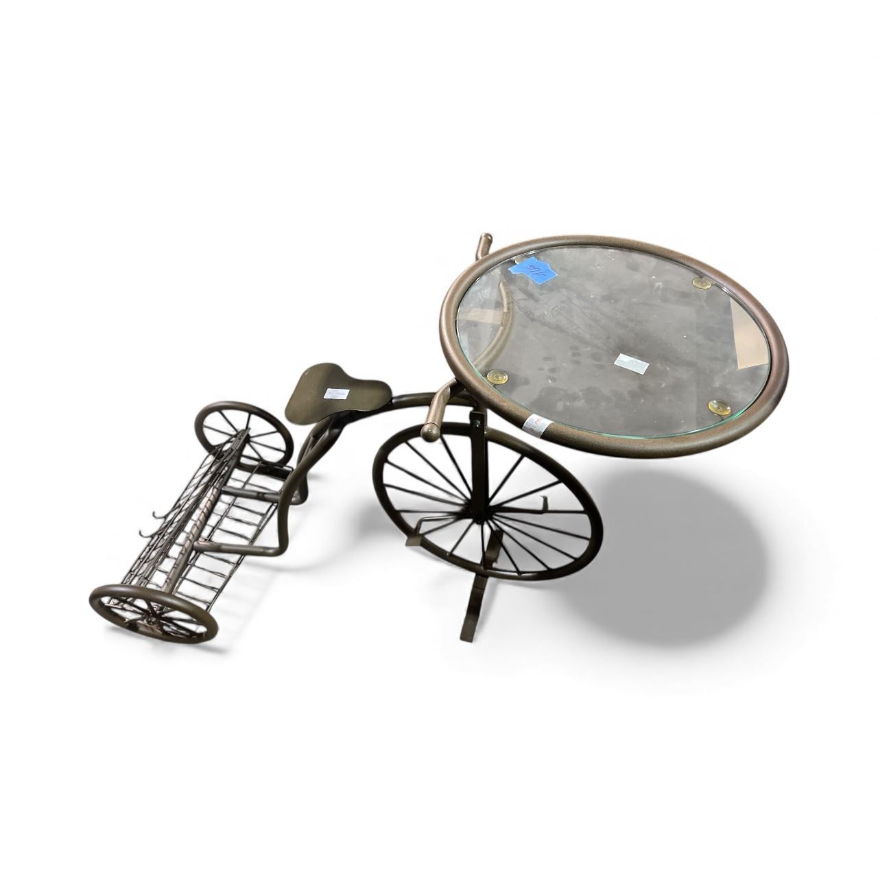 Rustic Tricycle End Table with Magazine Rack - Approx. H24" x L33"