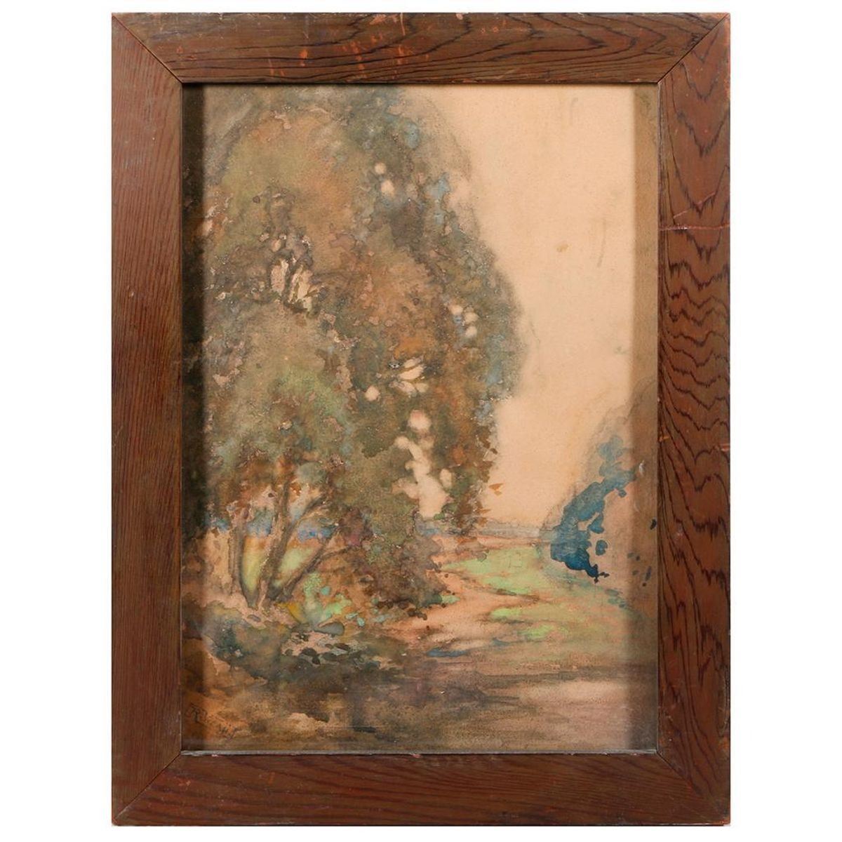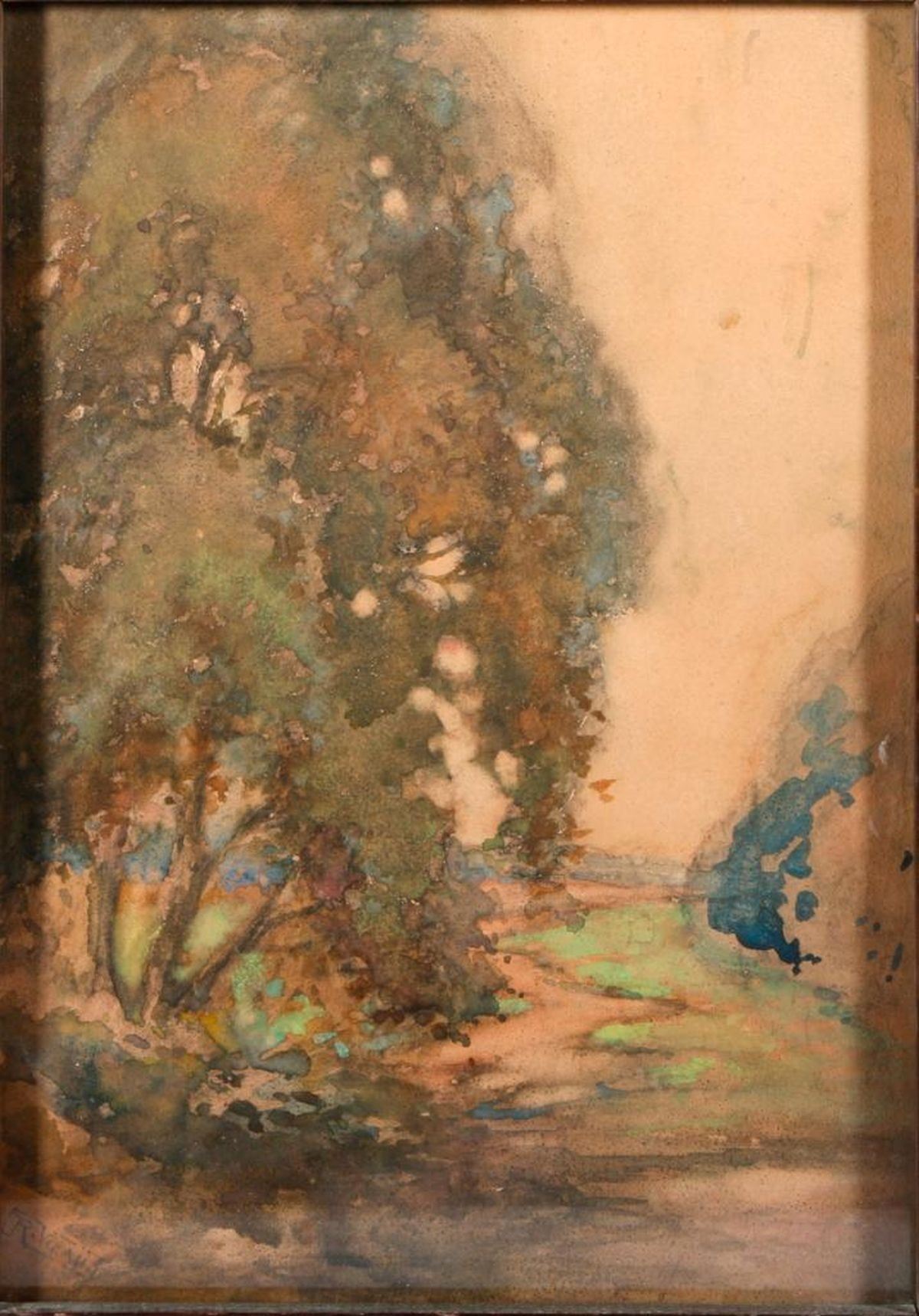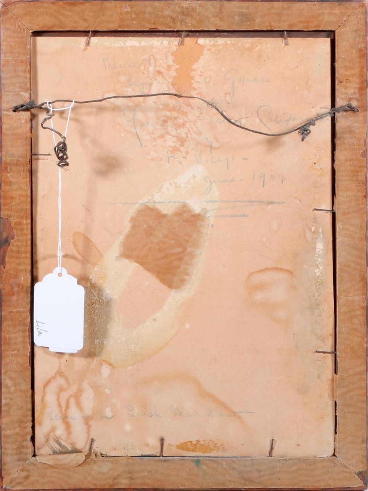 Artist: Rustin Vicaji (Born 1856). Subject/Title: Scene on an Irish Meadow. Date Created: 1909. Medium: Watercolor. Size Image: 14 1/2 inches high x 10. Size Frame: 17 inches high x 13. Condition: Good.