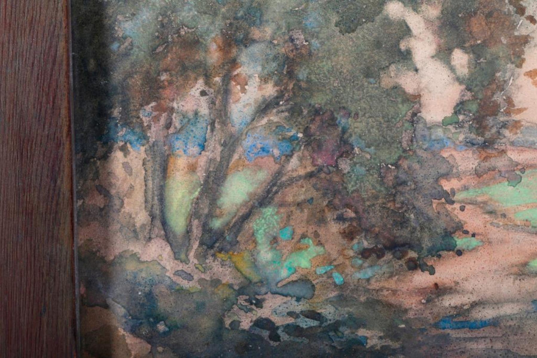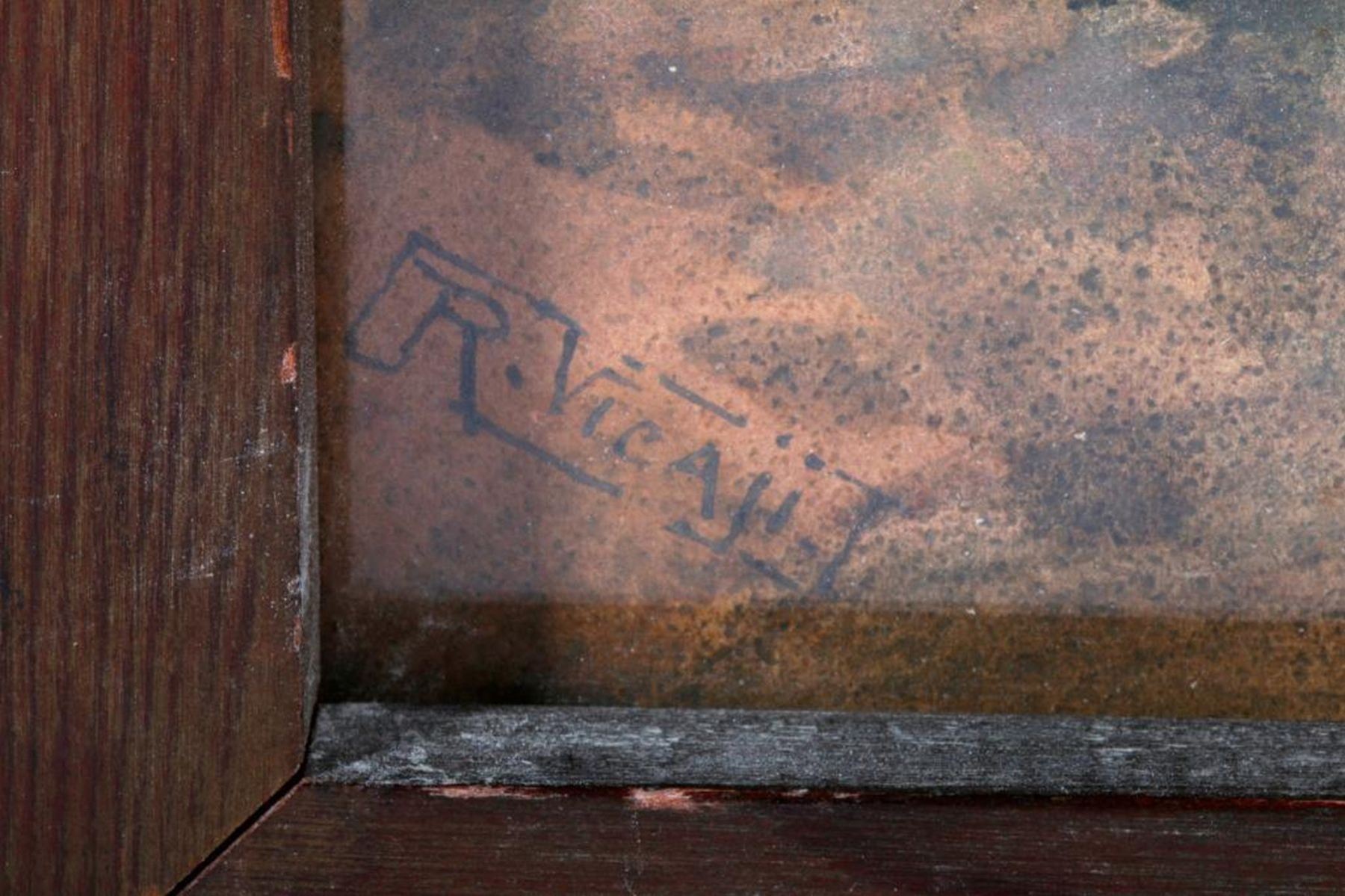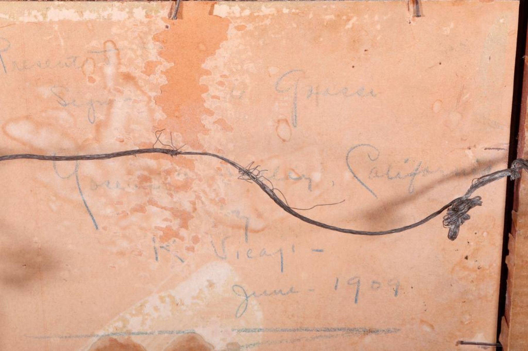 Artist: Rustin Vicaji (Born 1856). Subject/Title: Scene on an Irish Meadow. Date Created: 1909. Medium: Watercolor. Size Image: 14 1/2 inches high x 10. Size Frame: 17 inches high x 13. Condition: Good.