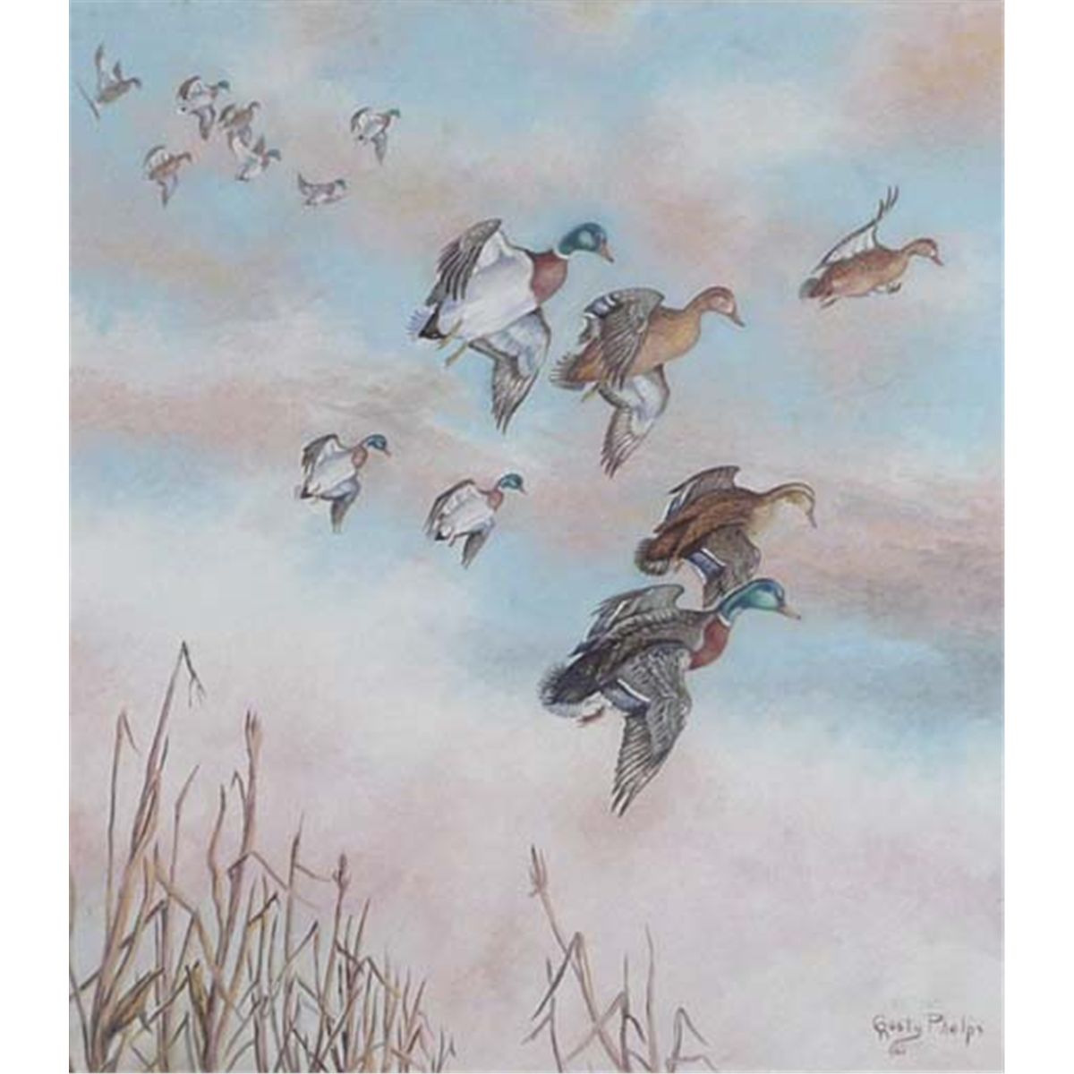Rusty Phelps, Oil on Canvas, "Ducks", 20" x 18", Signed Lower Right, Estimate: $250- $350