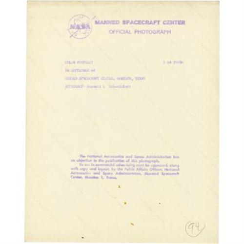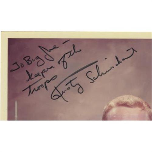 <B>Rusty Schweickart Signed Color Photograph,</B></I> 8" x 10", "<I>To Big Joe- keeper of the/ troops/ Rusty Schweickart.</B></I>" <I>From the collection of renowned former physical trainer of the astronauts Joe Garino. This lot is accompanied by a signed certificate of authentication from Garino verifying its provenance.</B></I><BR><BR><b>Shipping:</b> Flat Material, Small (<a target="_blank" href="http://www.heritageauctions.com/common/shipping.php">view shipping information</a>)