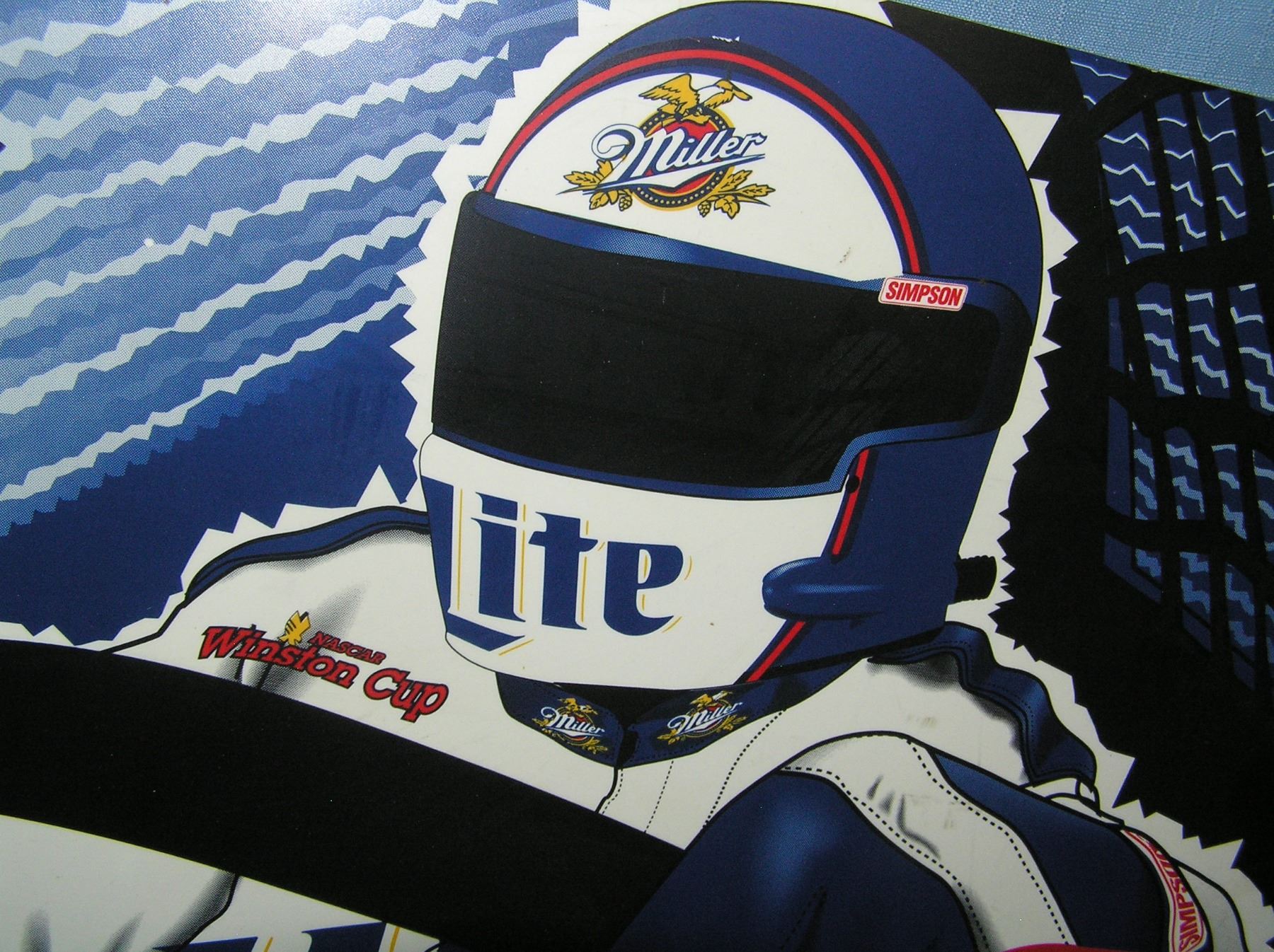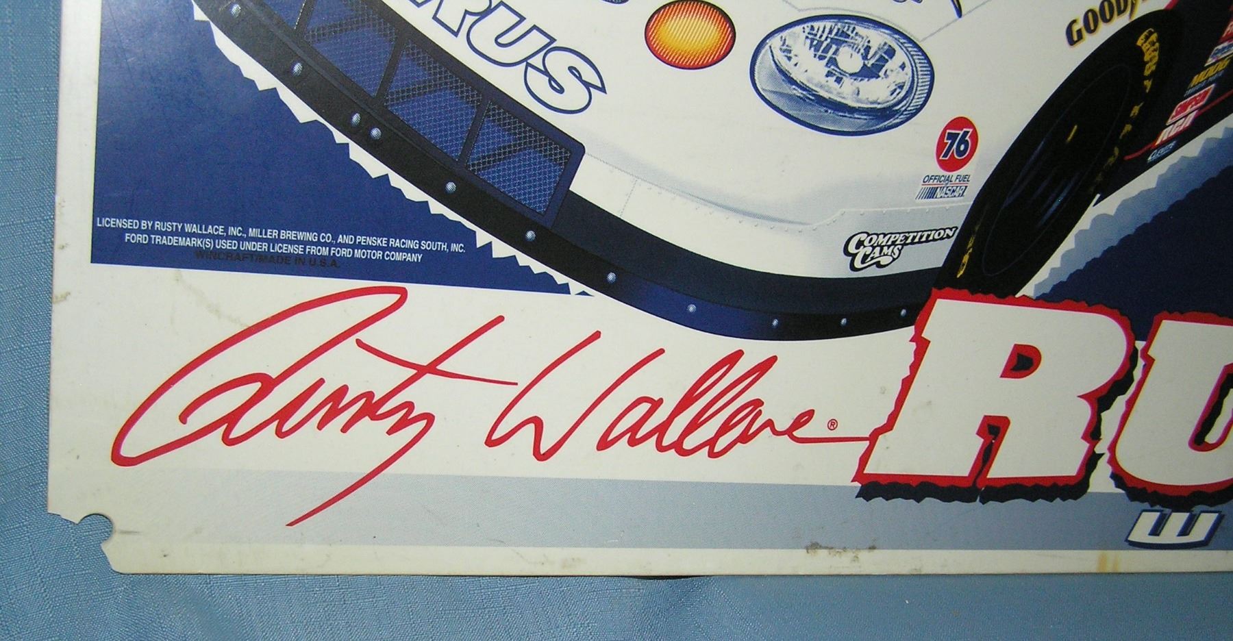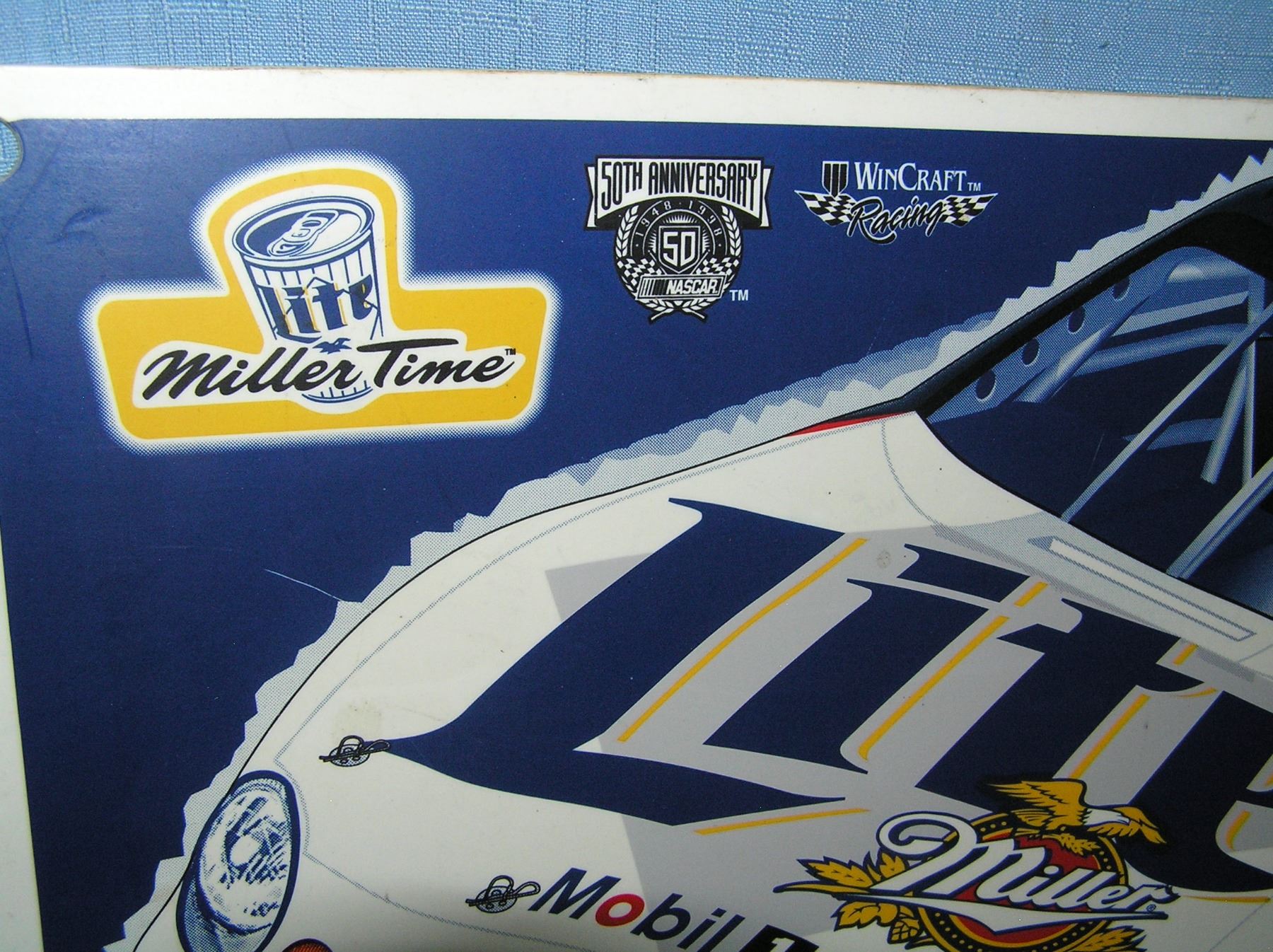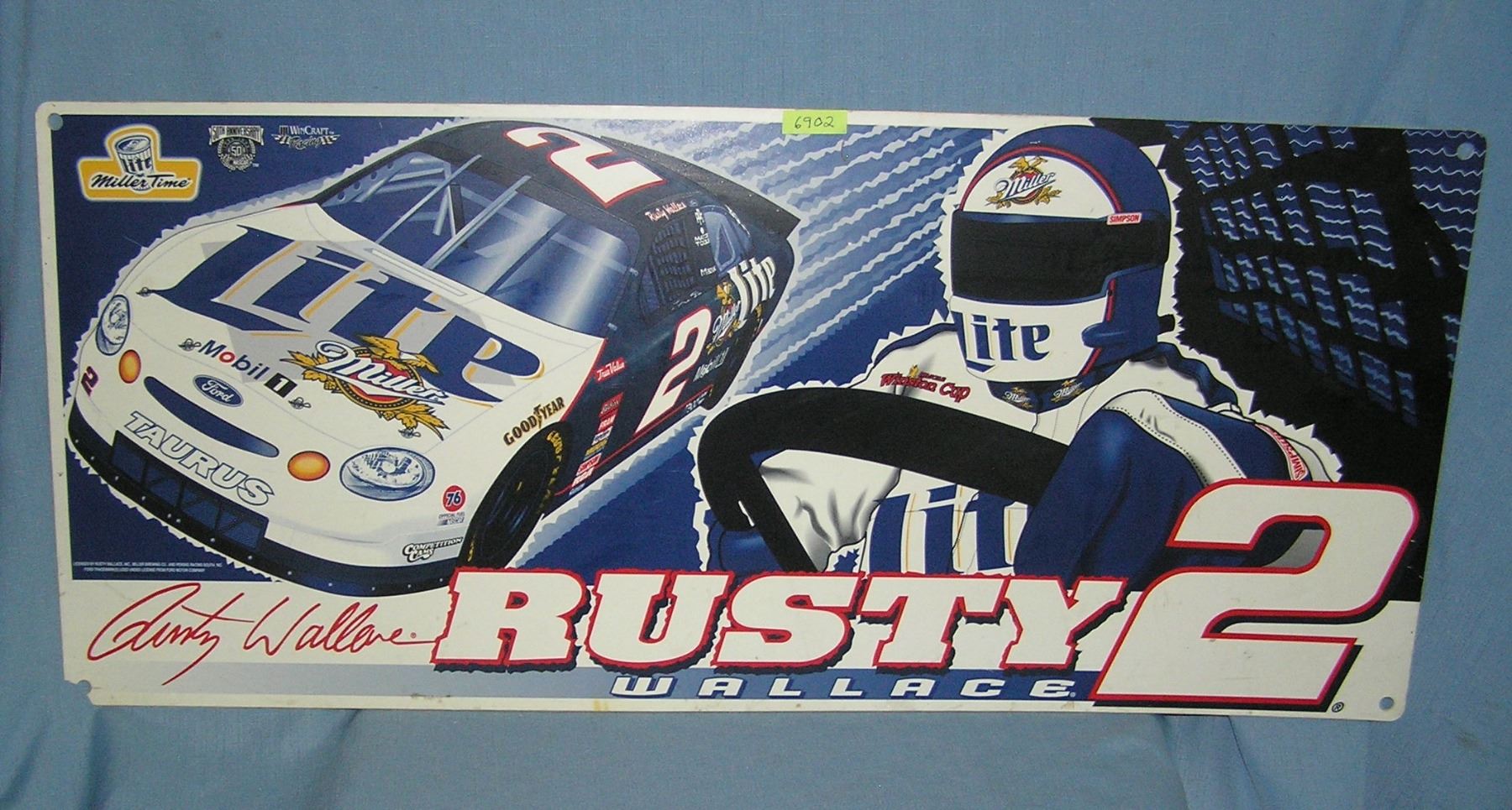 Rusty Wallace Miller Beer Nascar store display sign 15 1/2 inches by 35 1/2 inches printed on PVC hardboard est. value $125.00-$150.00