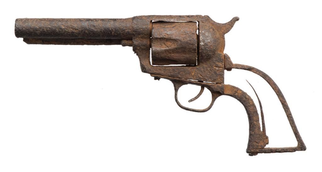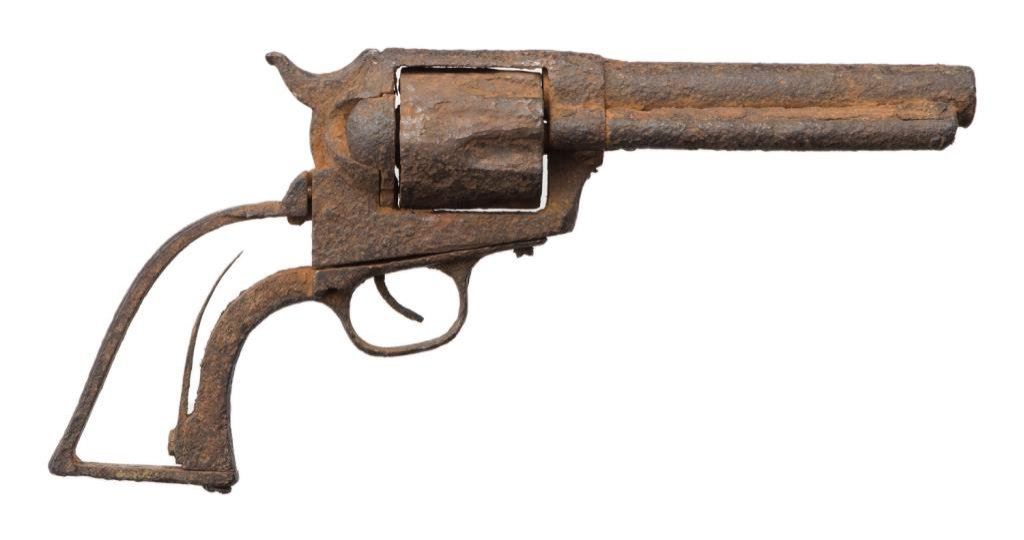 Rusty relic Single Action Army revolver, appears to be a period copy of a Colt; a great character piece; “if only this one could talk”. Est.: $150-$300.