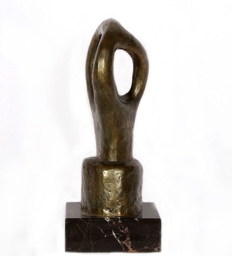 Ruth Gutman, Praying Woman, Bronze with Black Patina on a Marble Base