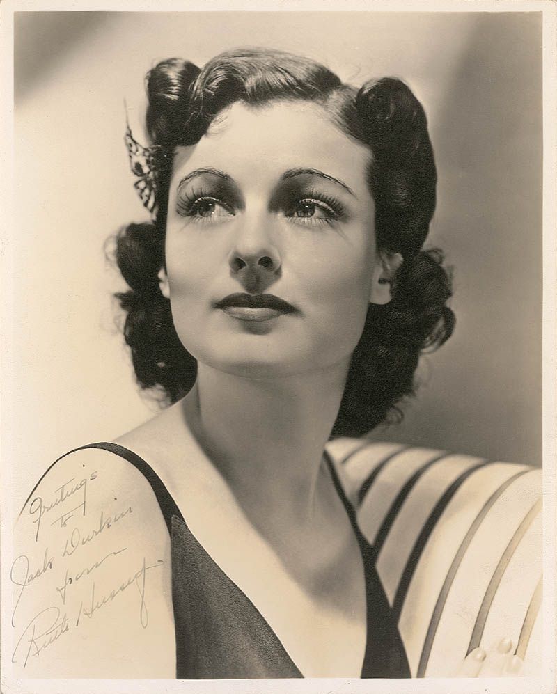Gorgeous vintage matte-finish 8 x 10 photo of Hussey, signed and inscribed “Greetings to Jack Durkin, from Ruth Hussey.” In fine condition, with signature a shade light.