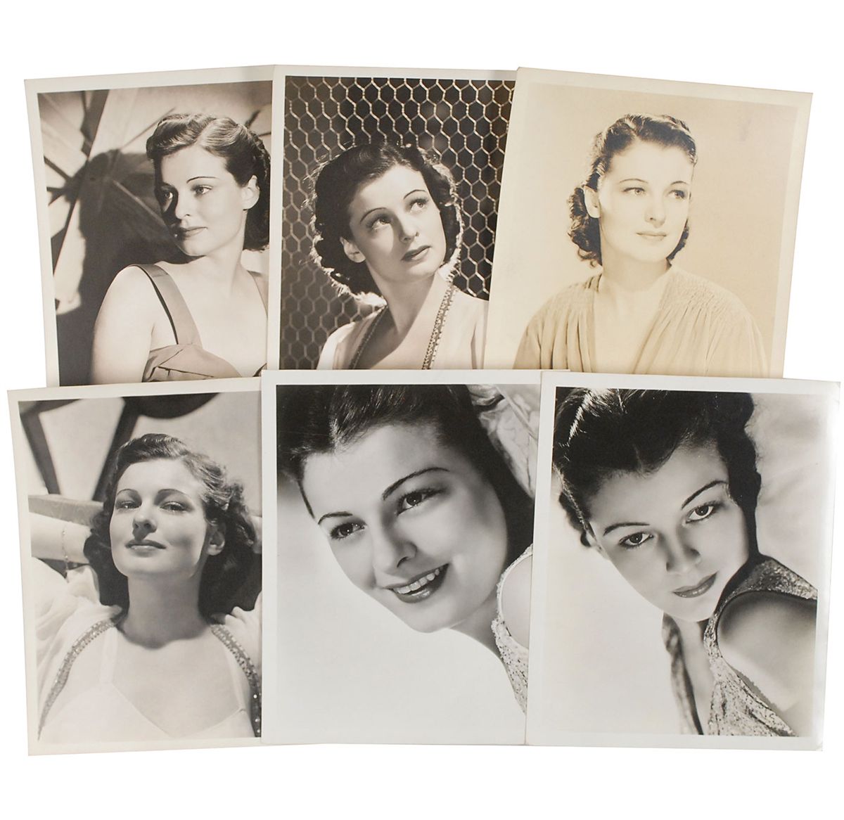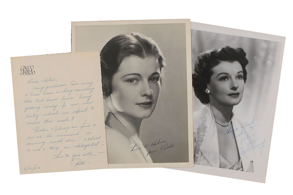 Three signed items: vintage matte-finish 8 x 10 portrait of Hussey by Lincoln McCabe, signed and inscribed in fountain pen; glossy 8 x 10 photo of Hussey by Gene Howard, signed and inscribed in blue ballpoint; and an ALS signed “Ruth,” one page, 6 x 8, June 15, 1953, responding to a friend. In overall fine condition. Accompanied by six unsigned vintage matte-finish photos of Hussey, 8 x 10 and 10 x 8, circa late 1930s.
