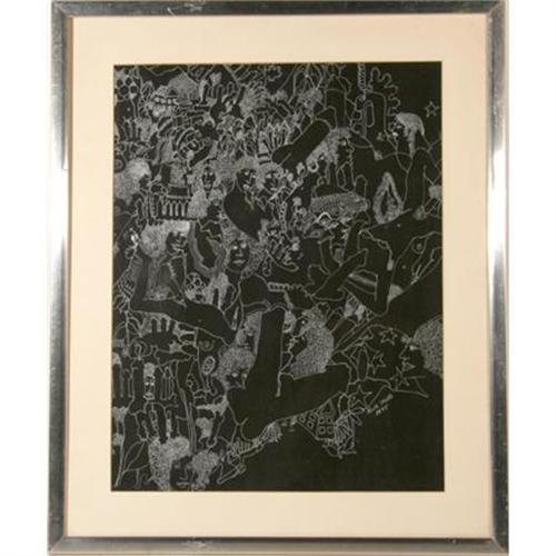 Medium: White Ink Drawing on Paper, Signed and dated l.r.